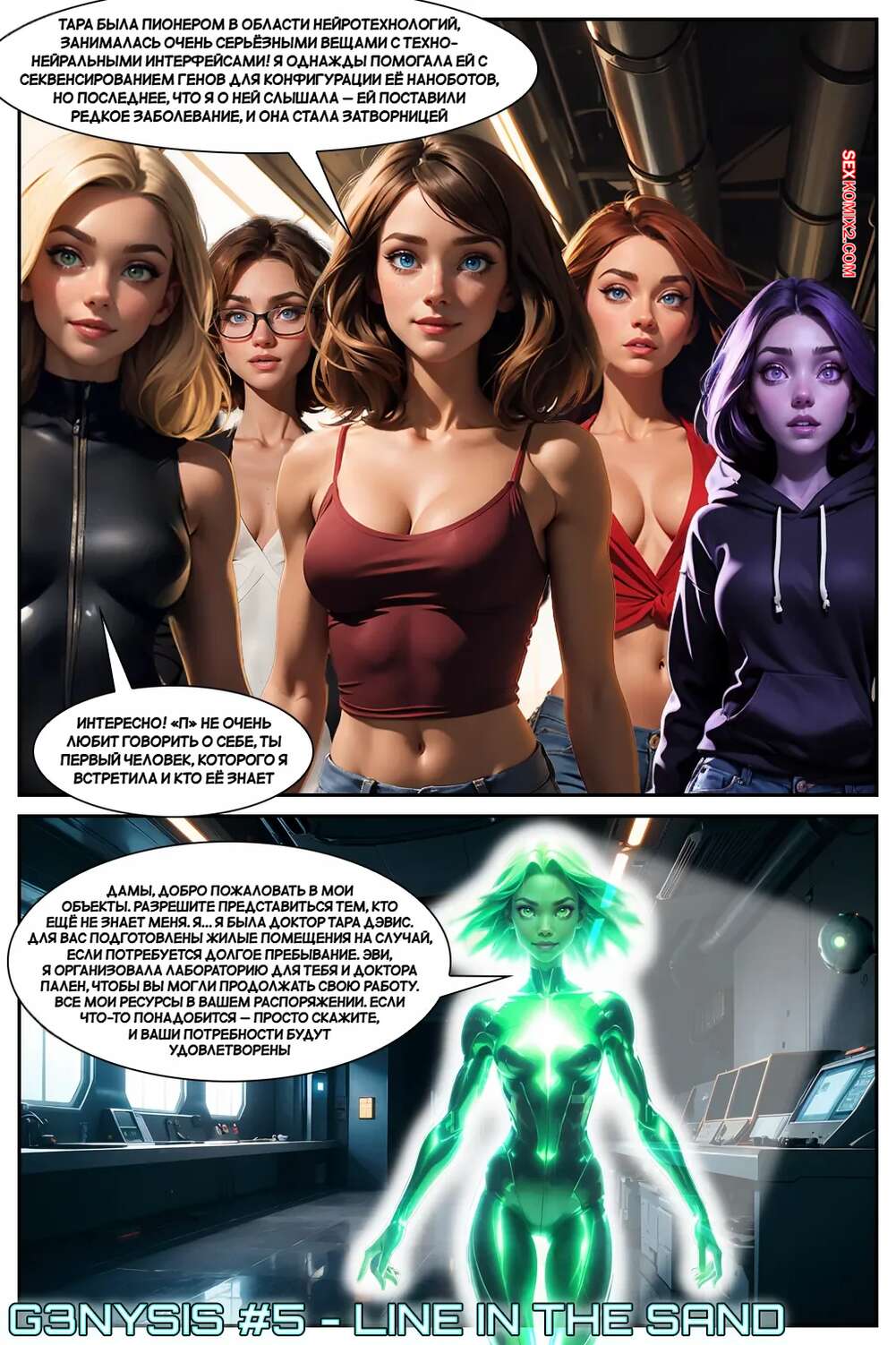 Порно комикс Генезис. Часть 5. G3nysis. G3nysis Горячая брюнетка решил немного расслабиться после тяжелого дня и сходить в бар. Красотка надела сексуальное платье и пошла в заведение, где обратила на себя взгляды парней.