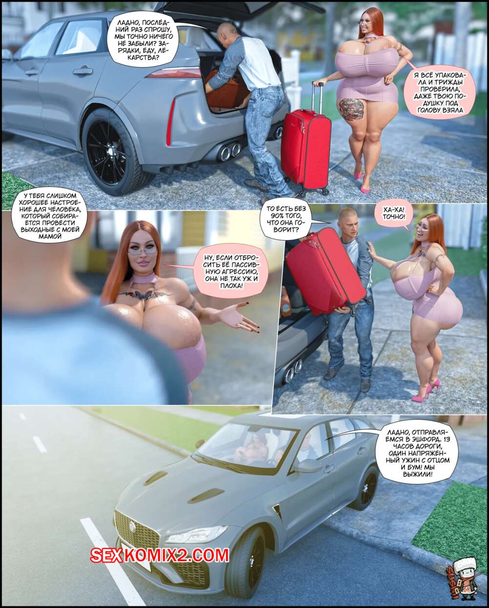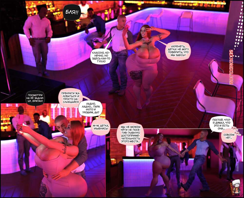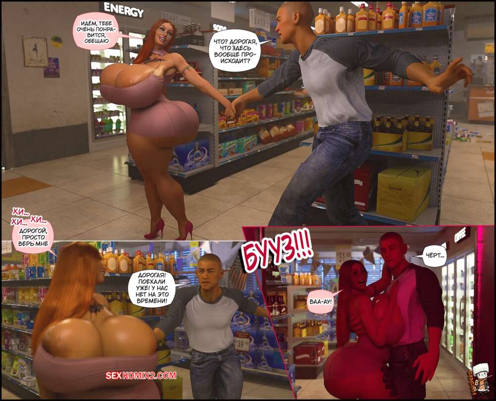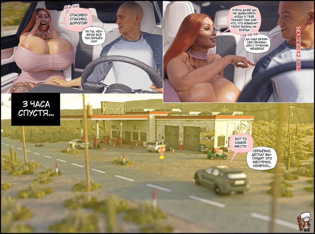 Порно комикс Объезд. Detour. GashousesushiArt Рыжая милфа заехала со своим мужем на заправку, где девушка решила спуститься в подвал. Там ее ждали большие черные члены, которые выебали сучку во все дырочки прямо на глазах ее мужа.