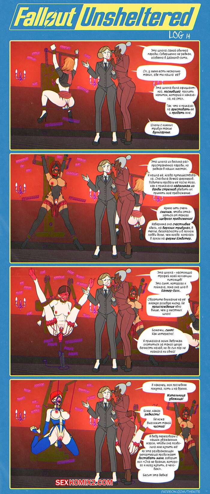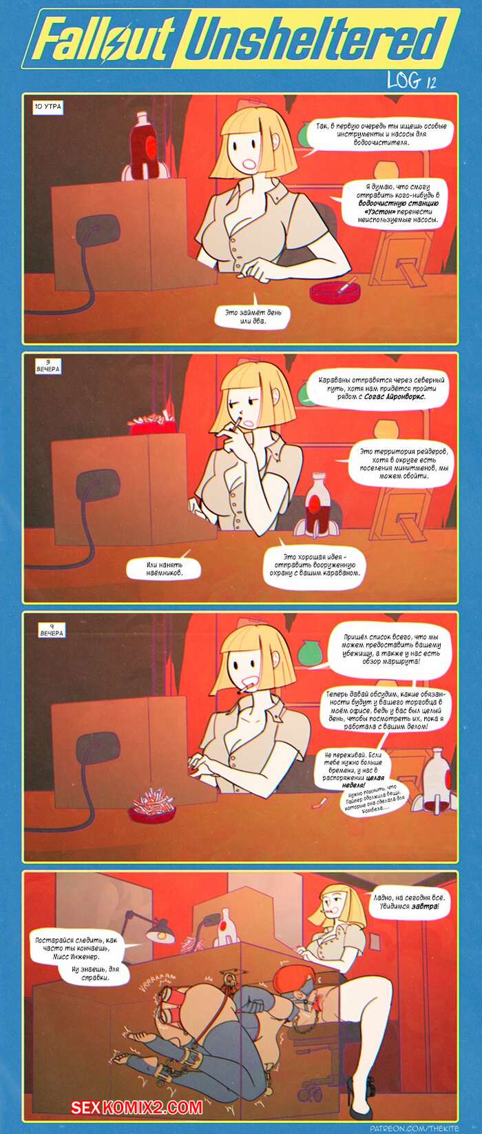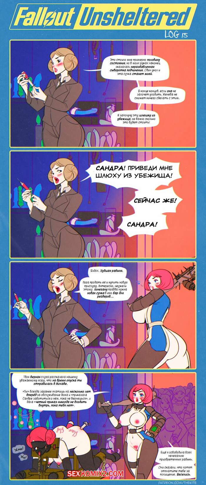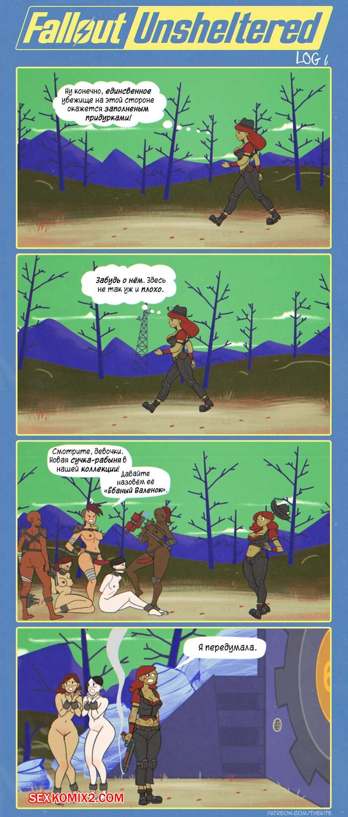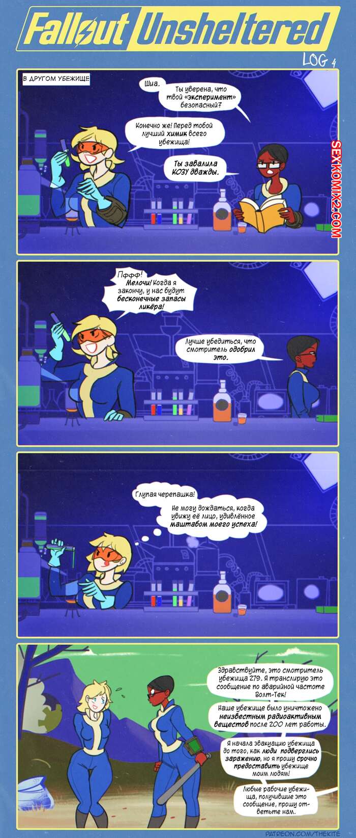 Порно комикс Фоллаут Без укрытия. Fallout Unsheltered. The Kite Красоткам стало скучно проводить время у себя в бункере, поэтому они решили развлекать друг дружку, устраивая лесбийские игры. Благо у когото из них был хуй, поэтому они могли трахаться намного веселее и приятнее, чем простой лесбийский секс.