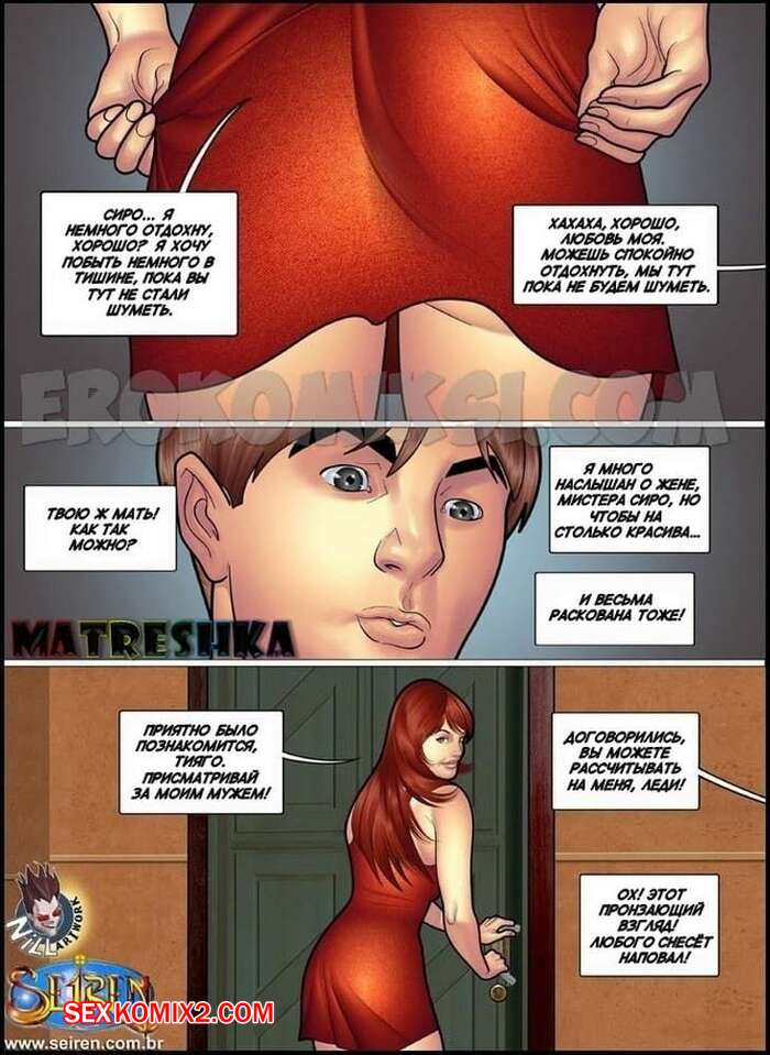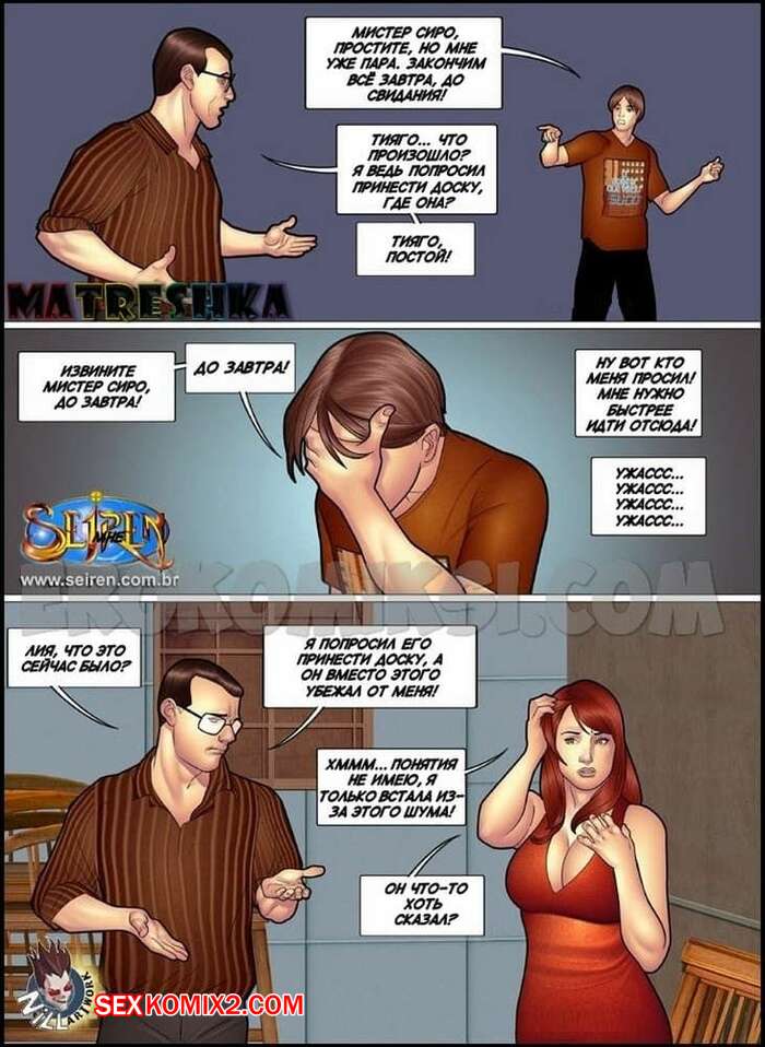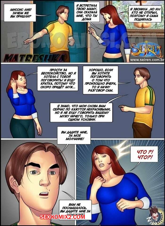 Порно комикс Приключения Лии. Часть 5. Эпизоды 1 и 2 и 3 Во время того, как парнишка помогал мужику по дому, он спалил, как его жена изменяет его работодателю. Чтобы он ее не спалил, красотка решила с ним поговорить и все это закончилось классным отсосом и еблей.