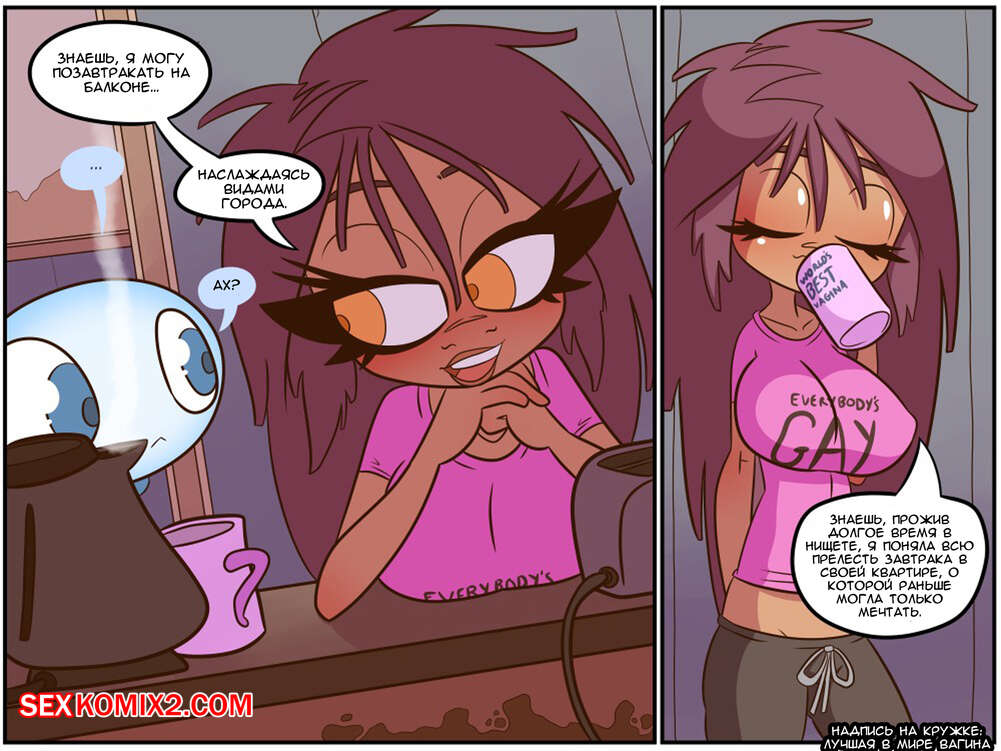 Порно комикс Конец старого мира. Часть 2. Newkowloon. Девушка озабоченная сексом и ее лучший друг призрак нашли друг друга. Он умеет превращаться в любую форму и создавать между ног член любого размера, это удобно когда твоя подруга нимфоманка.