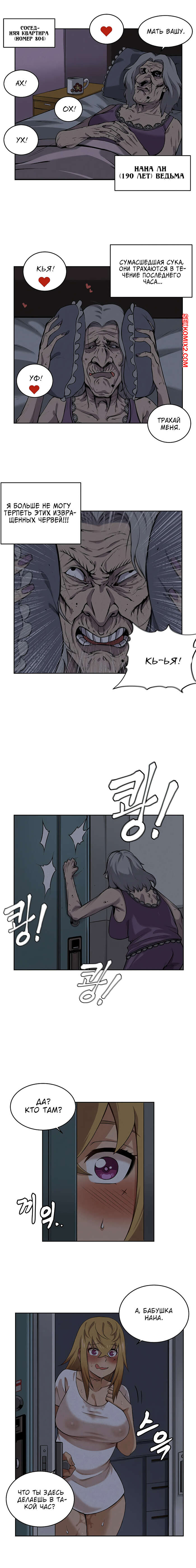 Порно комикс Моя девушка зомби. Часть 6. Girlfriend Zombie. Парень и девушка всю ночь трахаются и громко стонут. Эти звуки не дают уснуть строй колдунье, бабка так разозлилась на них что решили наложить заклятье.