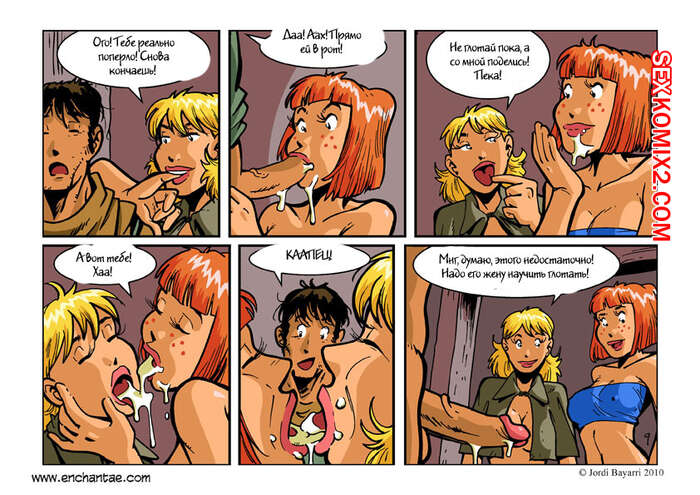 Порно комикс Энчантия. Jordi Bayarri. Enchantae. Части с 57 по 67 Красотки никак не могут успокоить свое огромное желание ебаться, поэтому продолжают поиски новых больших хуев в своих землях и как только находят, они сразу делают все, чтобы проверить их и хорошенько поебаться.