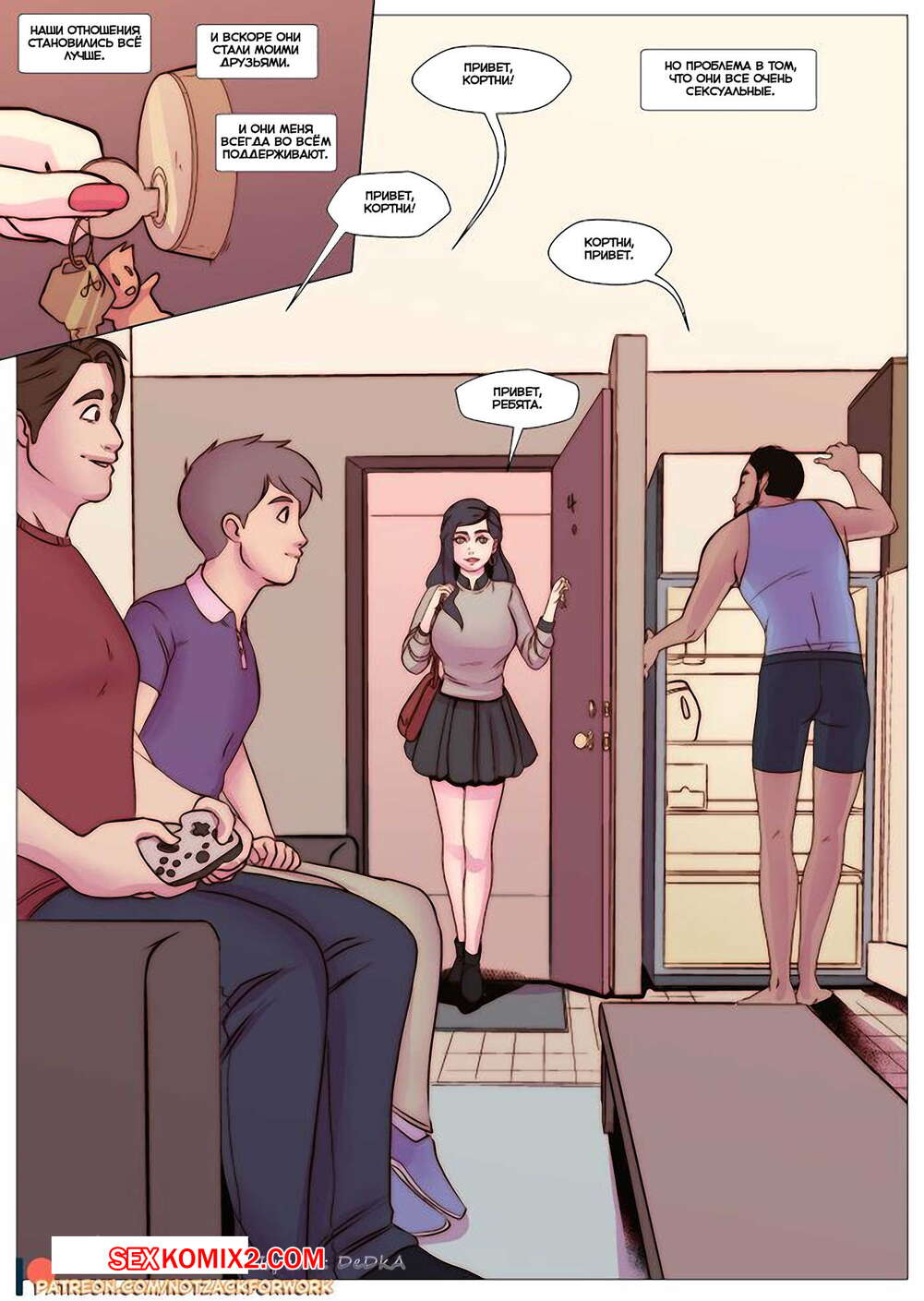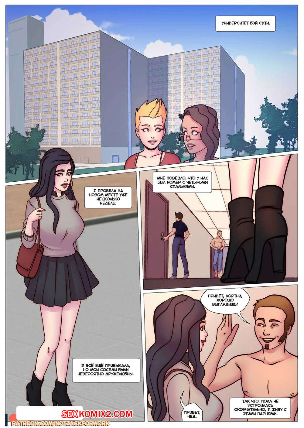 Порно комикс Кортни и её соседи по комнате Красотка приехала в колледж, где обнаружила, что среди ее соседей много красивых парней. Она стала ночью дрочить пизду, думая о них, и один из парней спалил ее. Она позвала парня к себе, отсосала ему, а затем дала себя выебать.