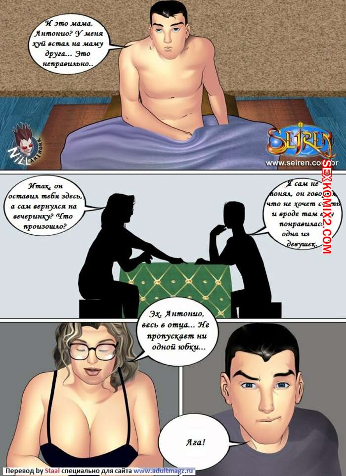 Порно комикс Мама друга Парнишка остался с ночевкой у друга, а с утра спалил его горячую мамку в душе. Ее очень сильно возбудило и тогда она решила проявить свое внимание в дружку сына и соблазнить его. Сучка стала сосать хуй молодого парня, а затем попросила ее хорошенько выебать.