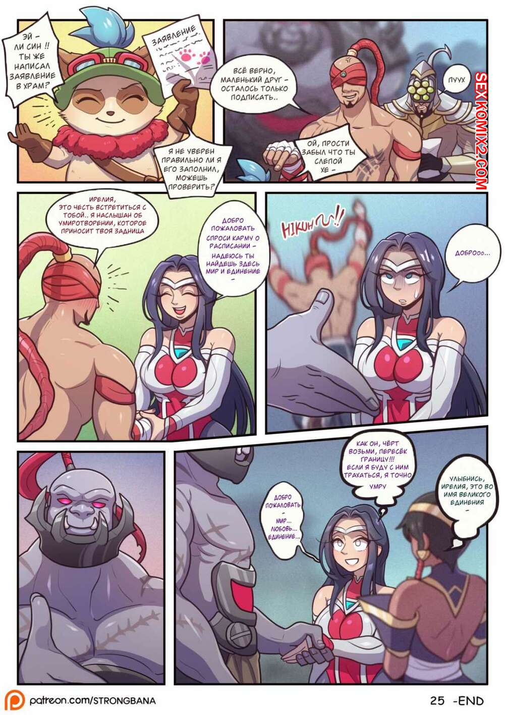 Порно комикс Великое Единение. Great Unity. League of Legends. Strong Bana. После битвы девушка воин вернулась домой, где ее ждали друзья. Чтобы отпраздновать победу они устроили оргию.