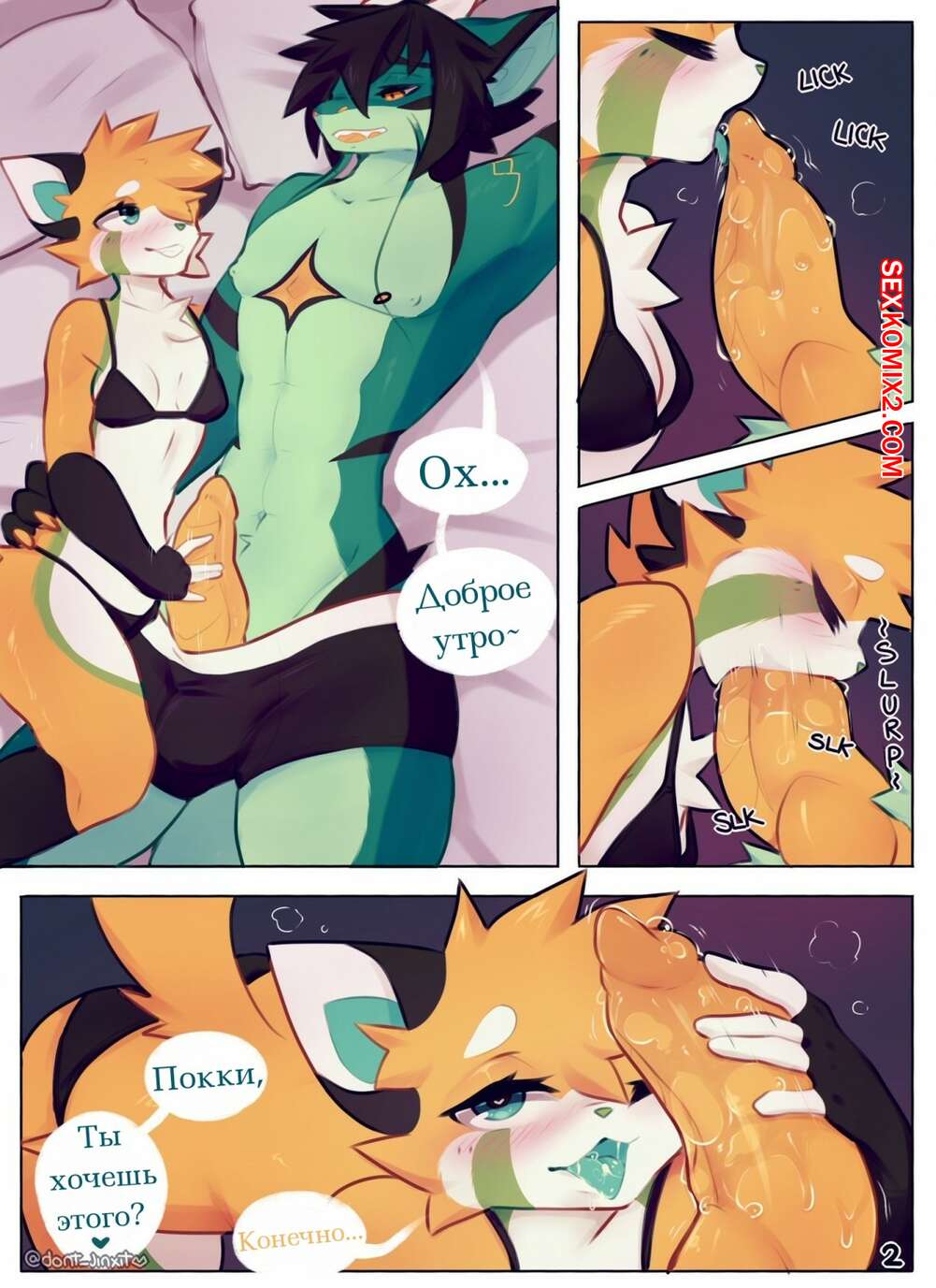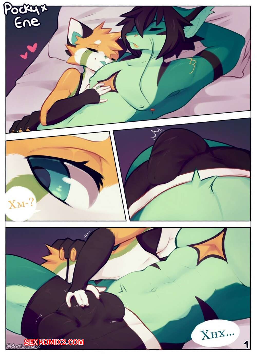 Порно комикс Фурри. Pocky × Ene Красотка решила разбудить своего паренька особым способом. Она достала его огромный хуй из трусов и стала его дрочить, а затем пошла дальше и начала его сосать, после чего залезла на него сверху, чтобы хорошенько поебаться.