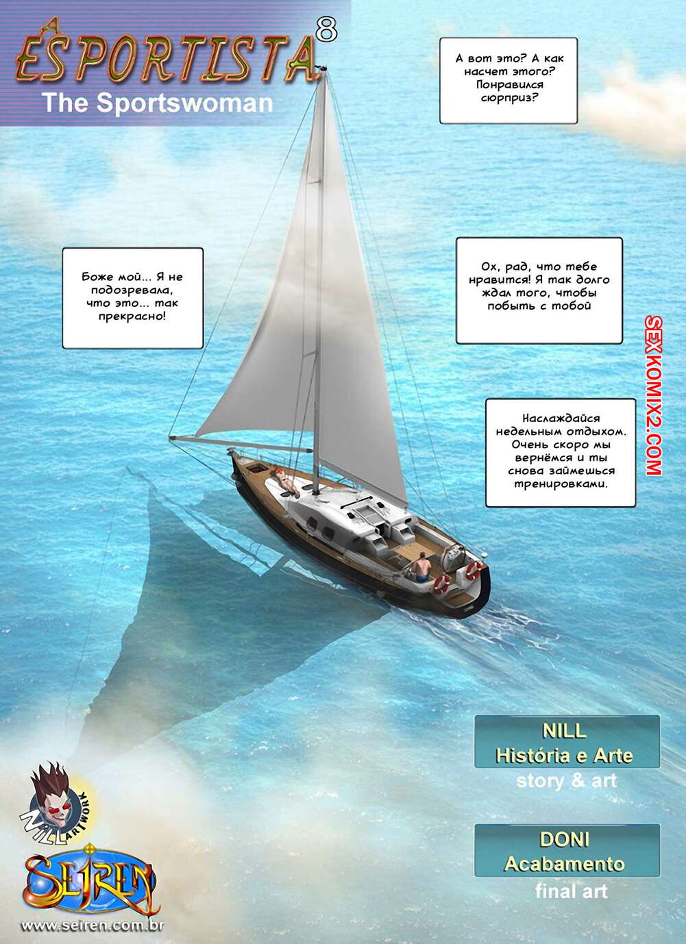 Порно комикс Спортсменка. Часть 8 Рыжая милфа отправилась со своим мужем в поездку на яхте. Там они решили повеселиться вдвоем в открытом море. Они разделись и сучка стала сосать хуй своего муженька, а затем он ее хорошенько выебал.