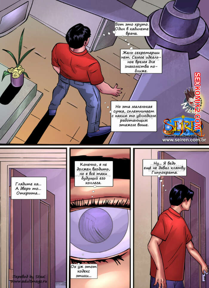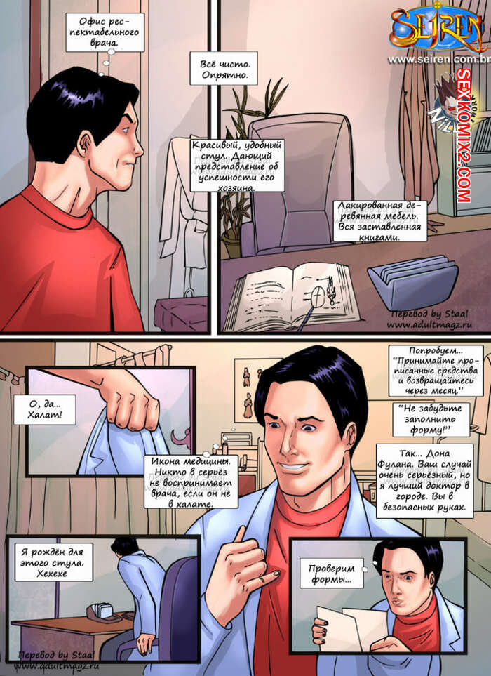 Порно комикс Ассистент доктора Красотка пришла к доктору, но там ее ждал молодой горячий парень, который сам пришел на прием. Сучка захотела, чтобы он ее трахнул и стала сосать хуй паренька, после чего он исполнил ее желание.