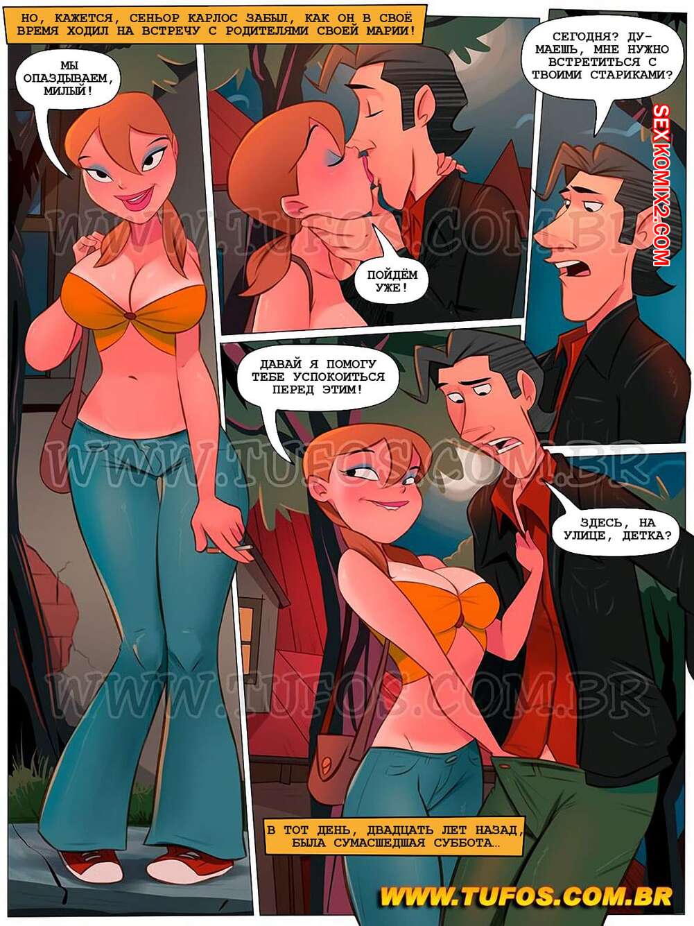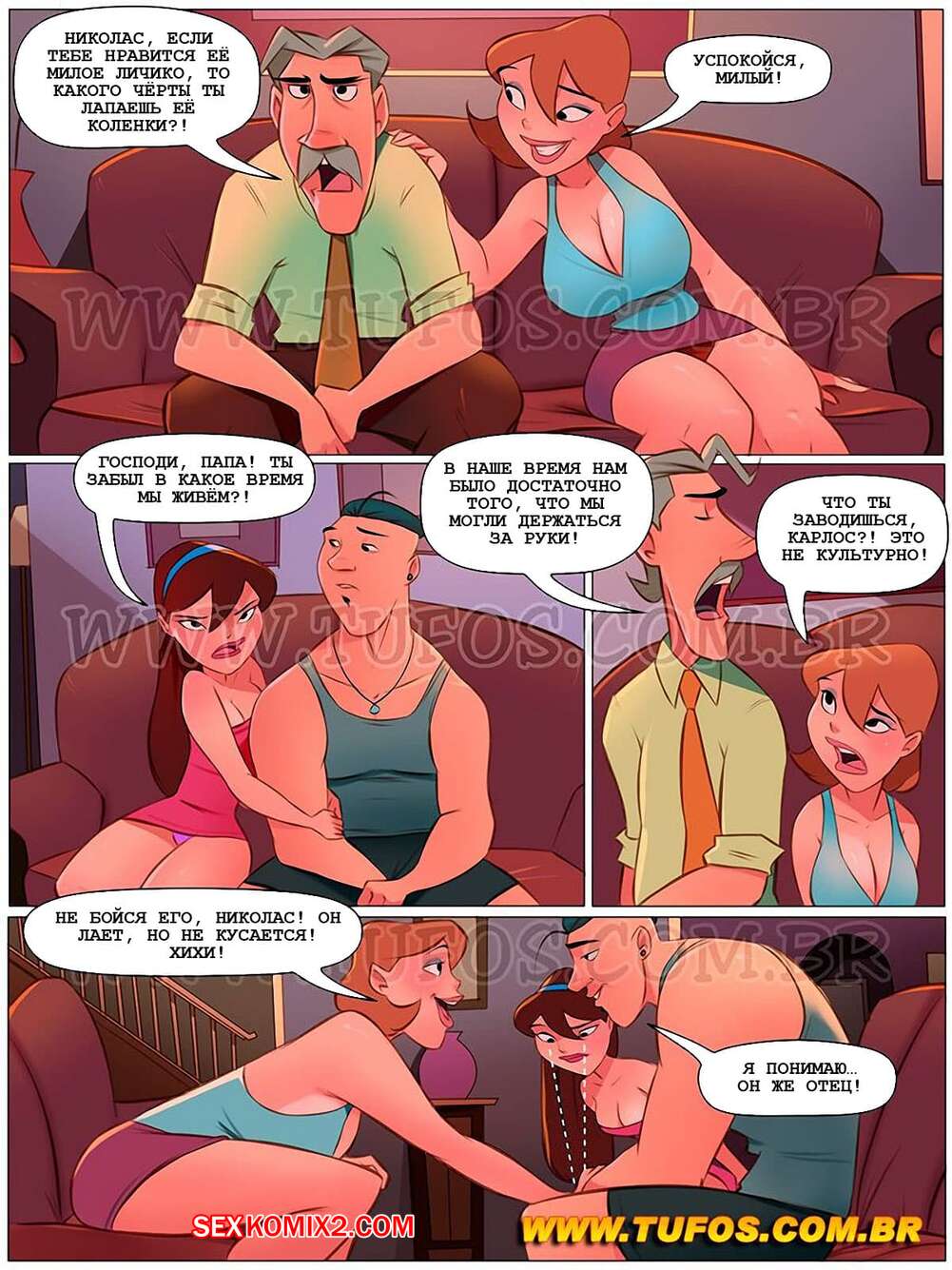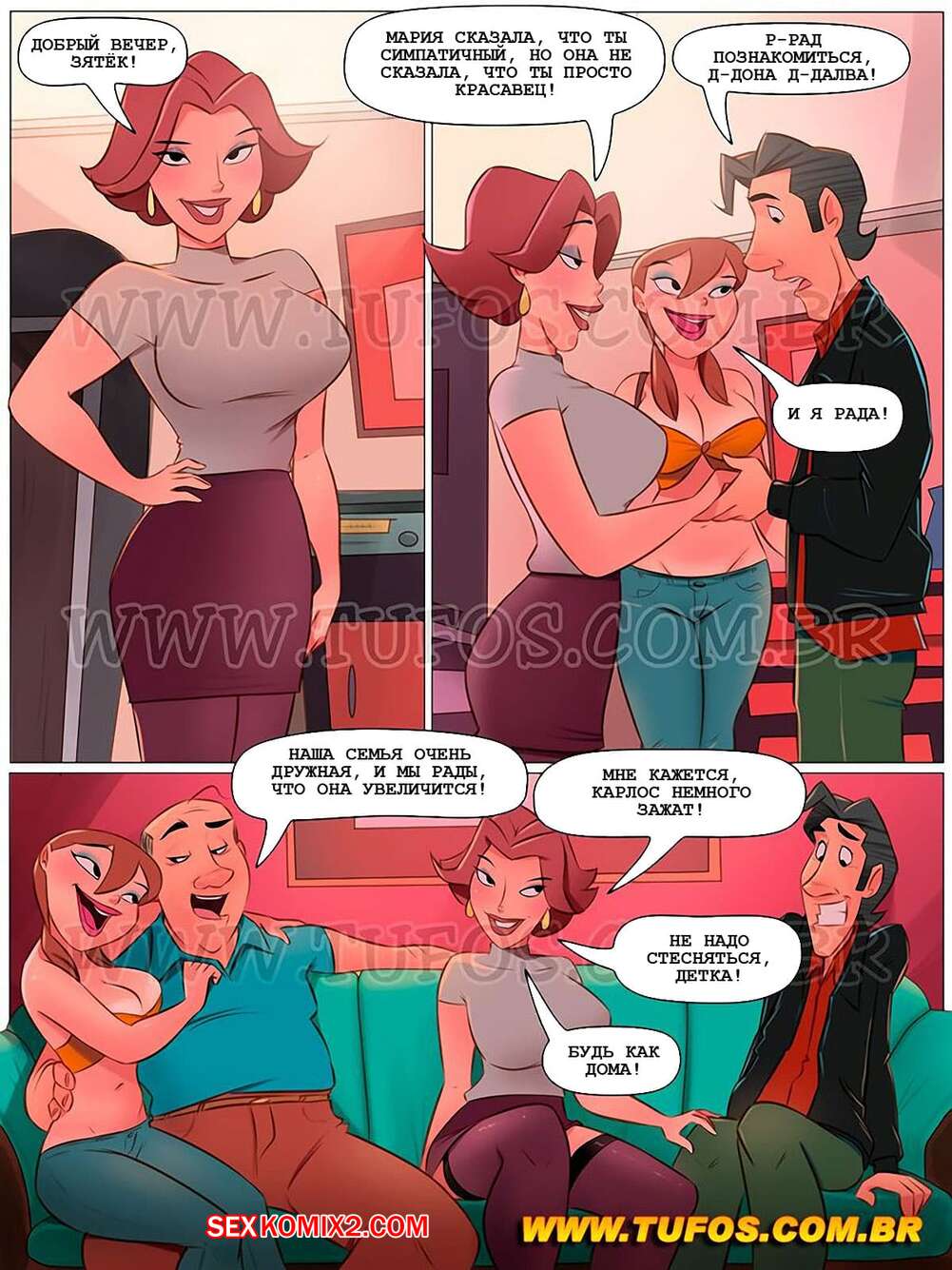 Порно комикс Похотливая семейка. Часть 47. Знакомство с тестем и тёщей Батя вспомнил как он знакомился с родителями своей жены. Придя к ним, он обнаружил, что семейка любит заниматься инцестом, и они предложили ему к ним присоединиться и выебать мамочку.