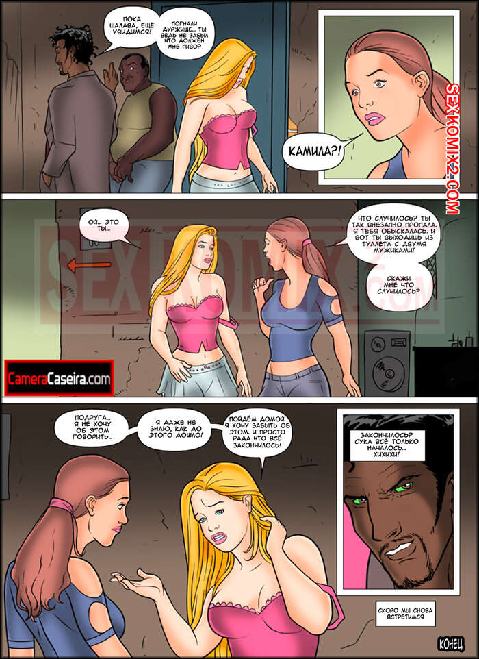 Порно комикс Заводные негры. Часть 1. Чарующая Камилла. Блондинка отправилась на вечеринку, она танцевала и веселилась и случайно задела своей попкой член парня. И начала на него кричать, обвиняя его в том что он извращенец. Позже она поплатилась за эти сова, когда он трахал ее белую киску.