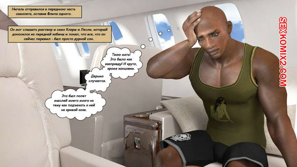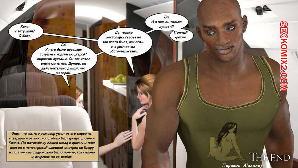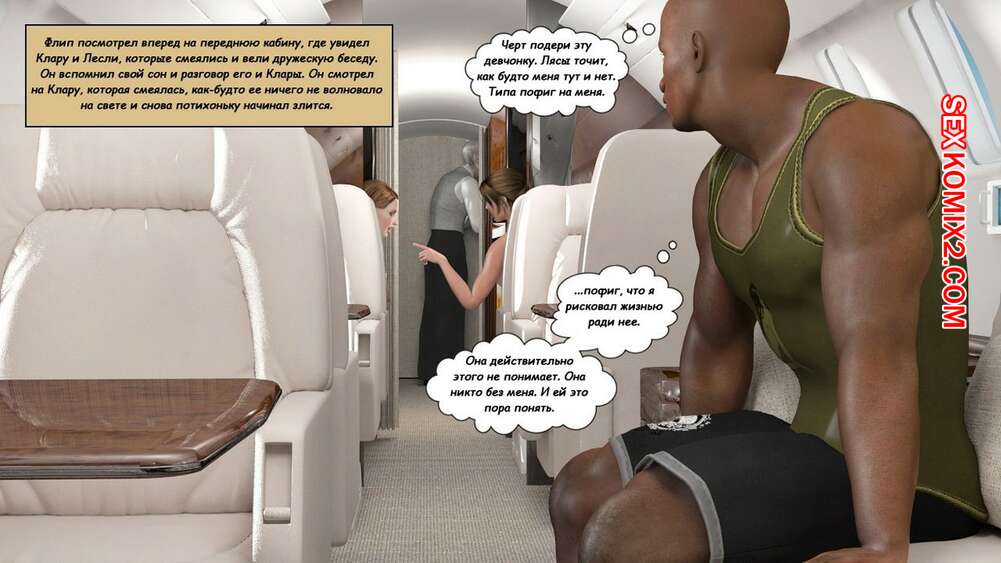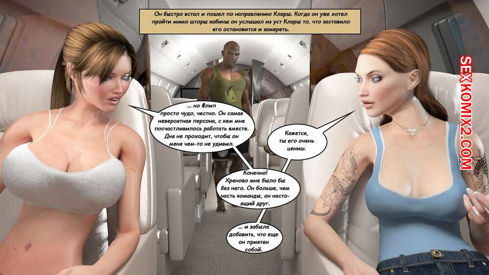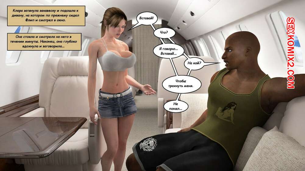 Порно комикс Клара Рэвенс. Часть 3. Путь домой По дороге назад с приключение, нашей красотке героине и ее черному дружку приспичило потрахаться прямо в самолете. Они дождались, когда рядом никого не будет и тогда черный парень поставил сучку на колени и достал ей свой хуй.