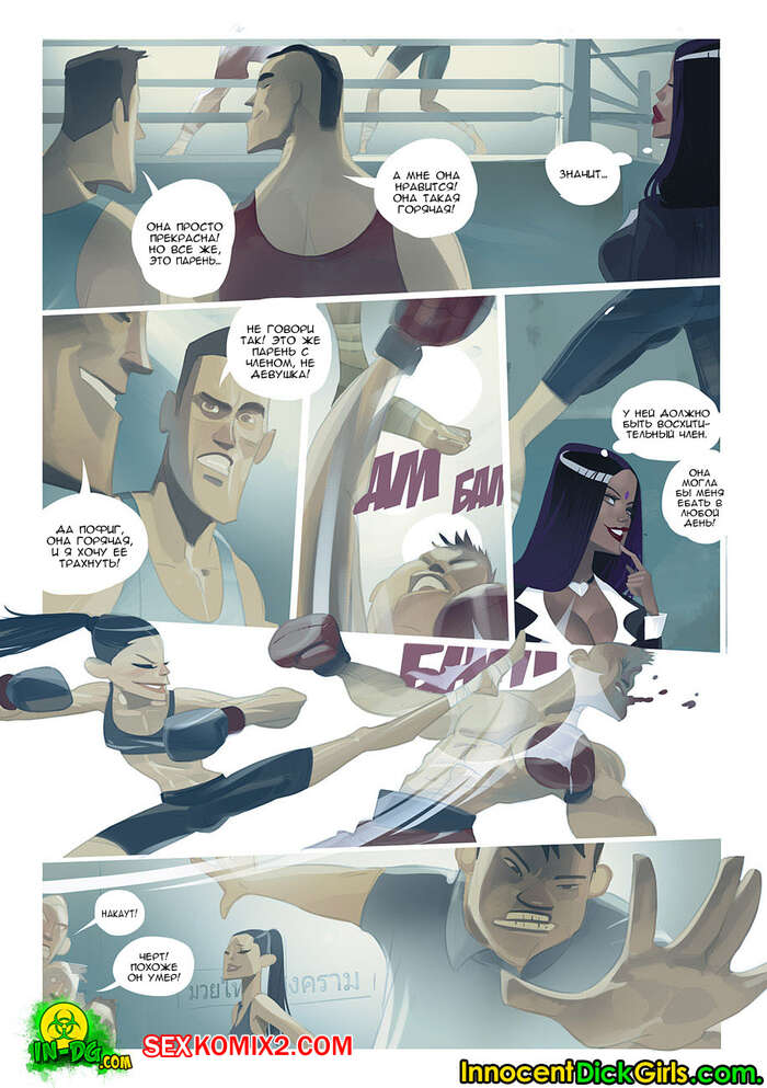 Порно комикс Футанари. Матч Лиссы Две красотки с огромными хуями готовились к боксерской схватке, но вдруг между ними возникла дикая страсть и красотки стали ласкать друг дружку и сосать хуи. Затем сучки занялись страстной еблей, получив огромное удовольствие.