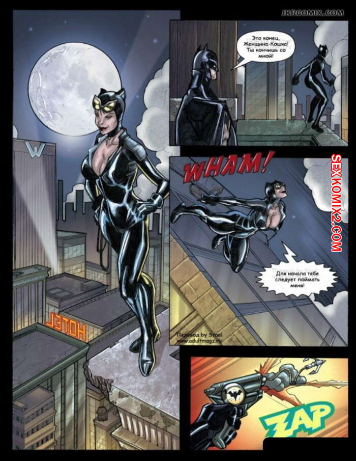 Порно комикс Batman. Тёмный член Бэтмен застал Женщину Кошку на крыше. Он приказал ей остановиться, ведь хотел выебать ее и заставить кончить. Но сучка решила сопротивляться и убегать от него, но от Бэтмена убежать невозможно.