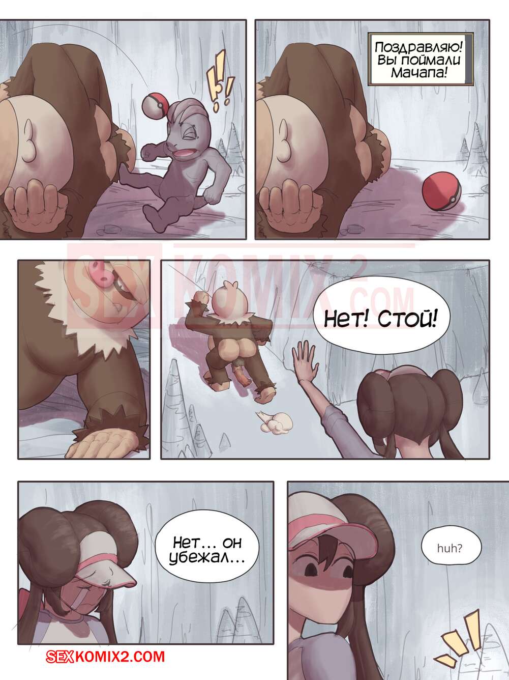 Порно комикс Покемоны. Мачамп служит, нет ебет. Часть 2. Machamp used Knock up Сисястая красотка отвергла небольшого монстрика с маленьким членом, поэтому когда он стал больше, как и его хуй, он накинулся на нее и хорошенько отъебал против ее воли.