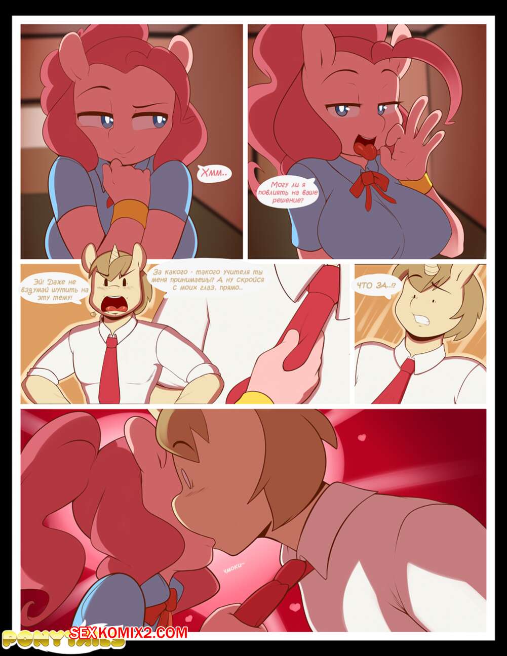 Порно комикс My Little Pony. На ступеньку выше Молодая сисястая ученица пришла к своему учителю, чтобы исправит оценку. Она решила сильно постараться для этого, поэтому встала на колени и начала сосать его большой хуй, а потом дала себя выебать.