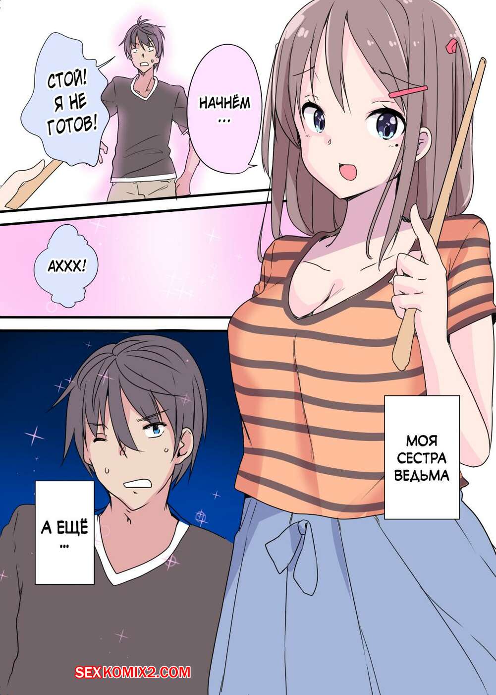 Порно комикс Сестра колдунья. Witch Sister Сестренке захотелось повеселиться со своим братиком. Она уменьшила его и стала совать его себе между сисек, а затем отправила его в свою пизду, благодаря чему смогла кончить.