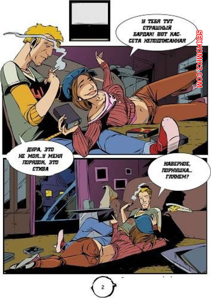 Порно комикс Звонок. The ring Парень с девушкой решили посмотреть звонок, но потом парень стал к ней приставать. Из телевизора вылезла телка с хуем, послала парня нахера и сама выебала его сучку своим большим хуем.