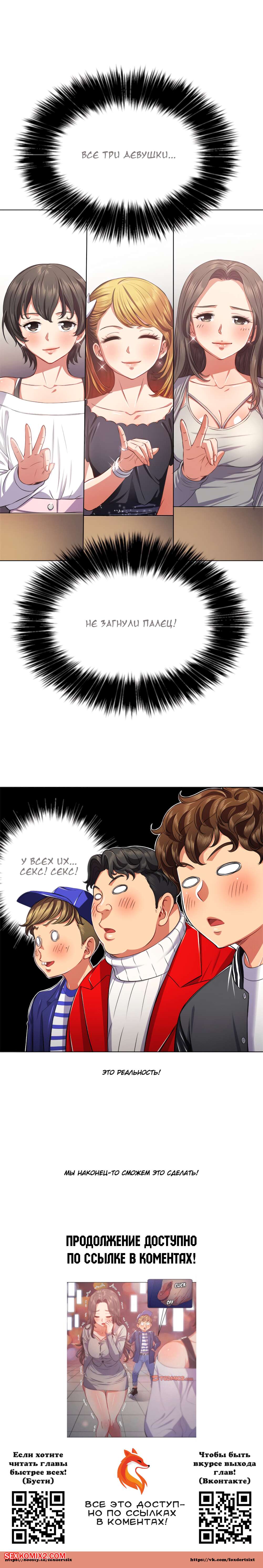 Порно комикс Изгой из старшей школы. Части 22 и 23 и 24. My High School Bully Парень встретился с несколькими горячими красотками в кафе, а затем они позвали его домой. Сучки разделись и отправились на кровать, приглашая парня хорошенько их выебать.