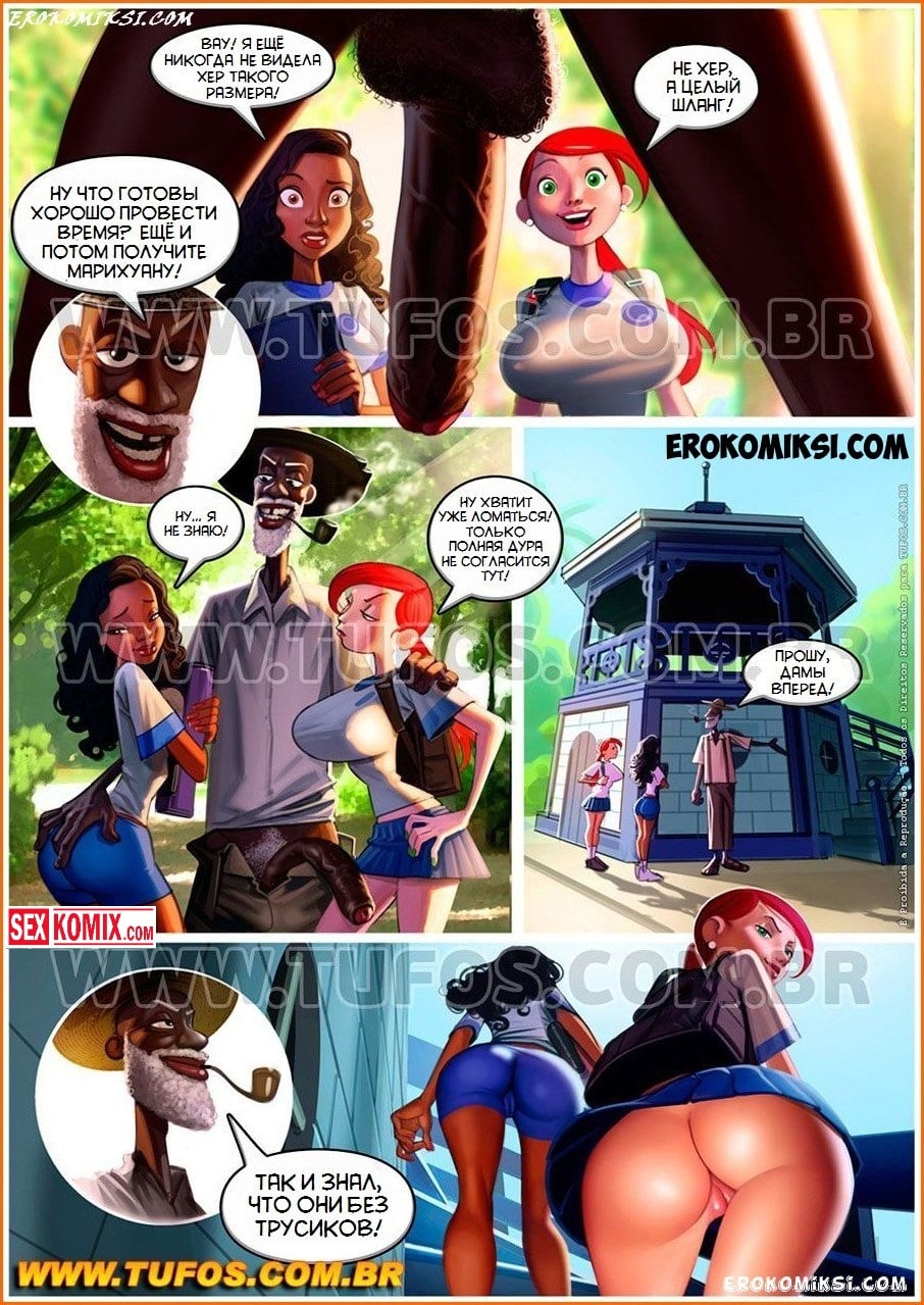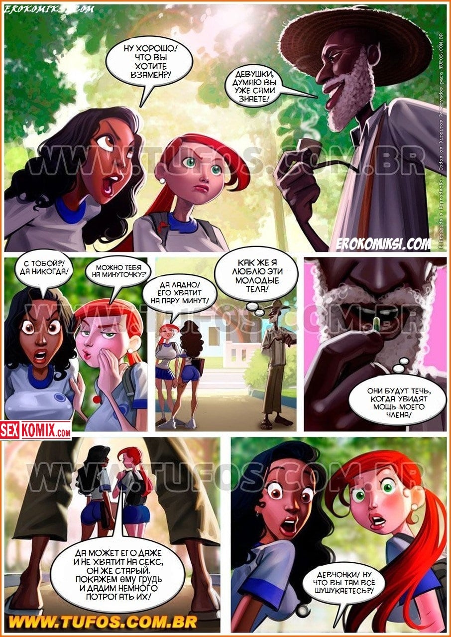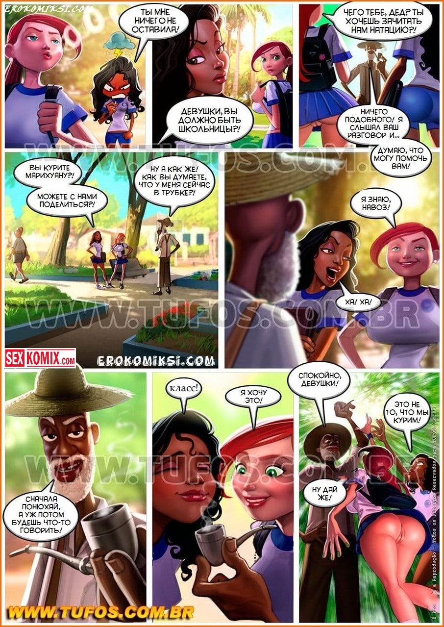 Порно комикс Удалые старички. Часть 3. Курить полезно. Двое развратных стариков продолжают охотиться на девушек в парке. И вот они увидели двух студенток, которые курили в кустиках, чтобы их никто не видел. Мужчины подошли к ним и хотели сделать замечание о том, что они курят совсем не то, что нужно. И предложили им сигареты по интересней, после которых у девушек снесло крышу. И теперь их можно было легко раскрутить на секс, возбужденные девушки начали снимать себе одежду прямо в парке. Двое развратных мужчин устроили им отличный секс.
