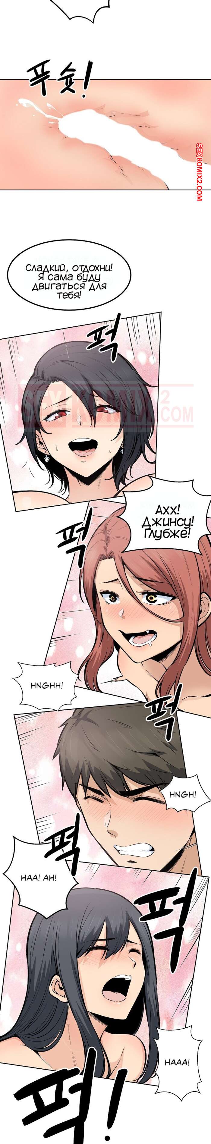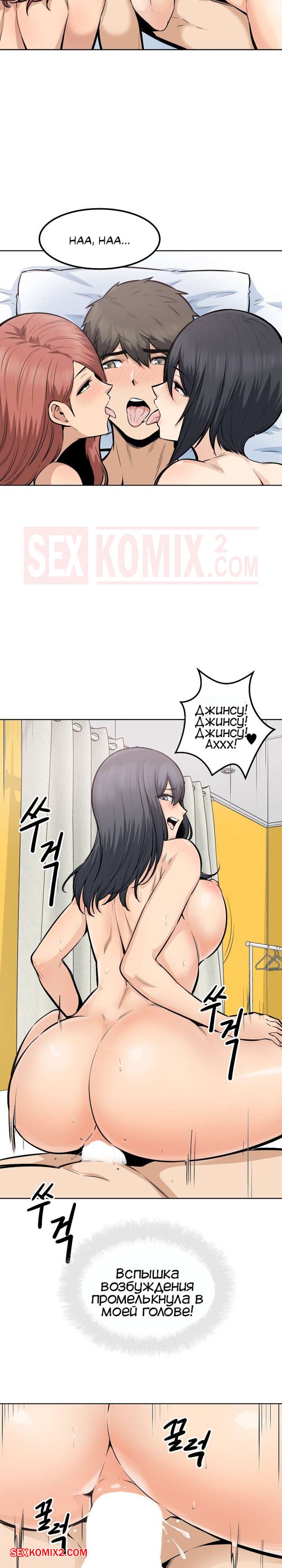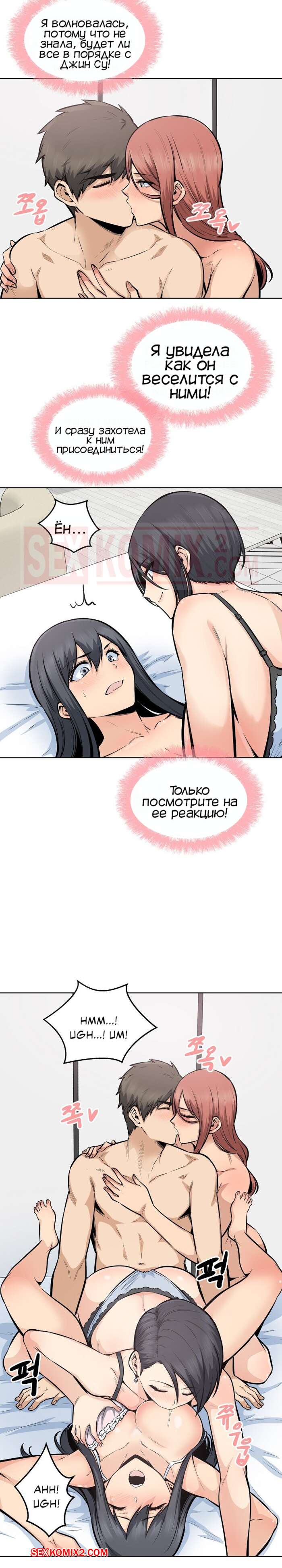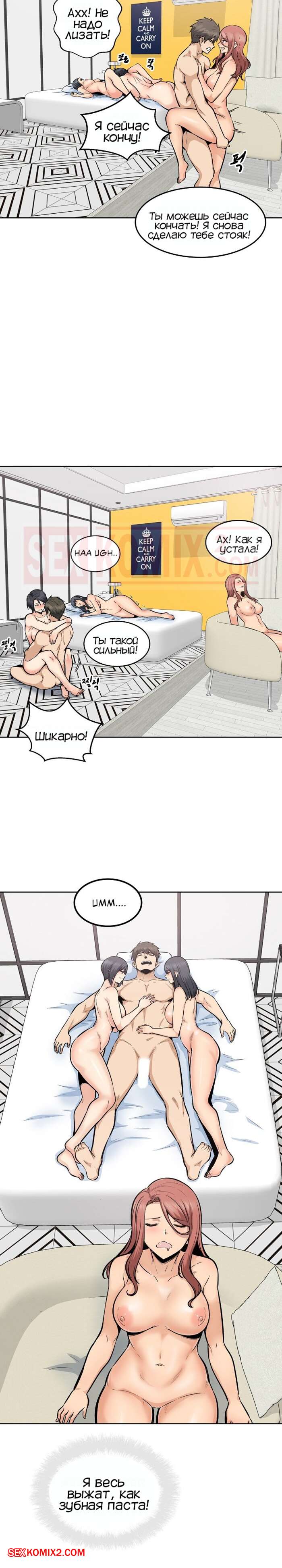 Порно комикс Извини, это моя комната. Часть 86. The Ark Is Me. Альфасамцовость это парня взлетает до космоса, теперь он справляется сразу с тремя девушками, да так ловко что они по очереди ходят отдохнуть и потом снова возвращаются в кровать для продолжения.