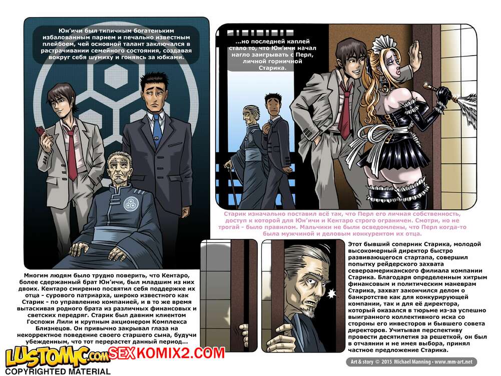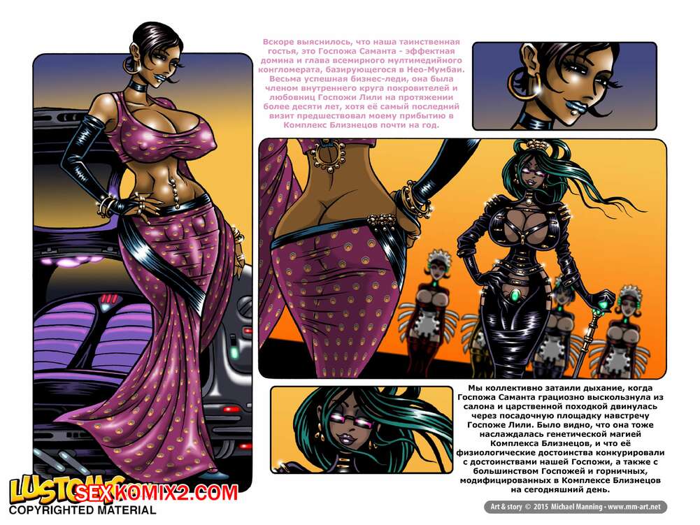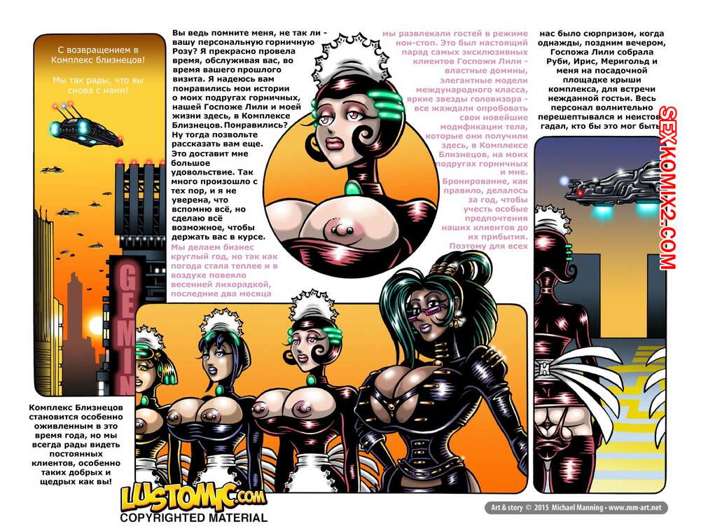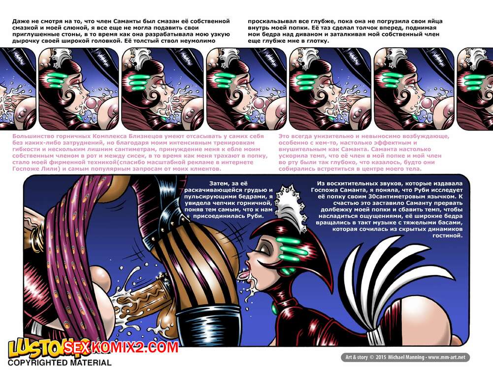 Порно комикс Комплекс Близнецов. Часть 2. Gemini Complex. Lustomic Горячая сисястая милфа с большим хуем любит использовать своих рабынь с большими членами, трахая их в рот и жопу каждый раз, когда только пожелает, а также она не забывает звать на веселье своих подружек.