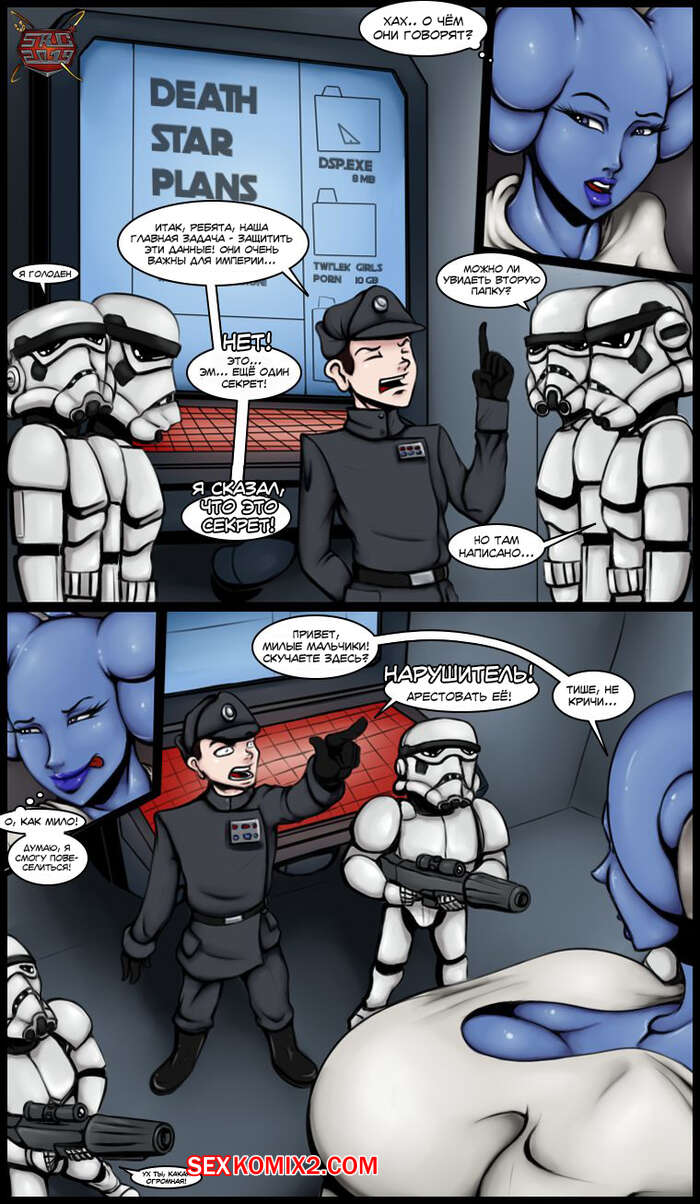 Порно комикс Звездные войны. LeyaLek Adventure Hot Busty Babe Surrounded by Stormtroopers. To get out of such a situation alive, she quickly undressed and gave them all to fuck her, depriving them of their concentration.