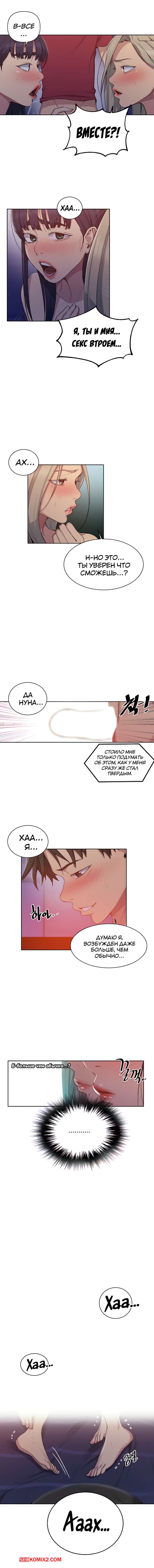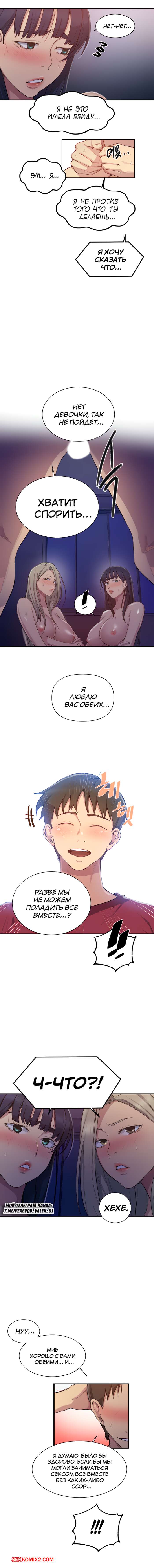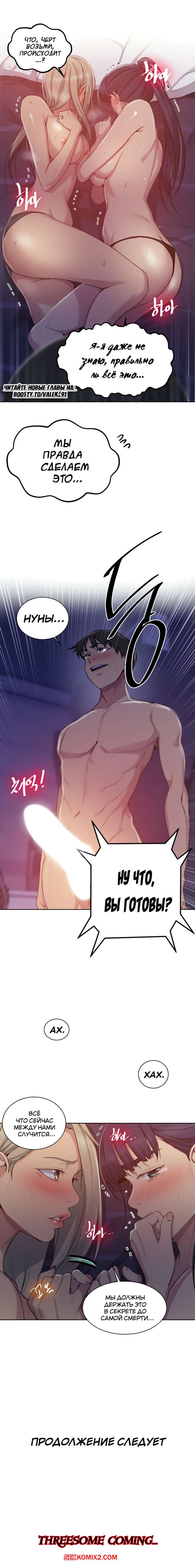 Порно комикс Тайное обучение. Часть 99. SecretClass. Это бомба, парень, который не мог связать ни слова с девушкой в начале, теперь учувствует в тройничке и ловко справляется с двумя девушками.