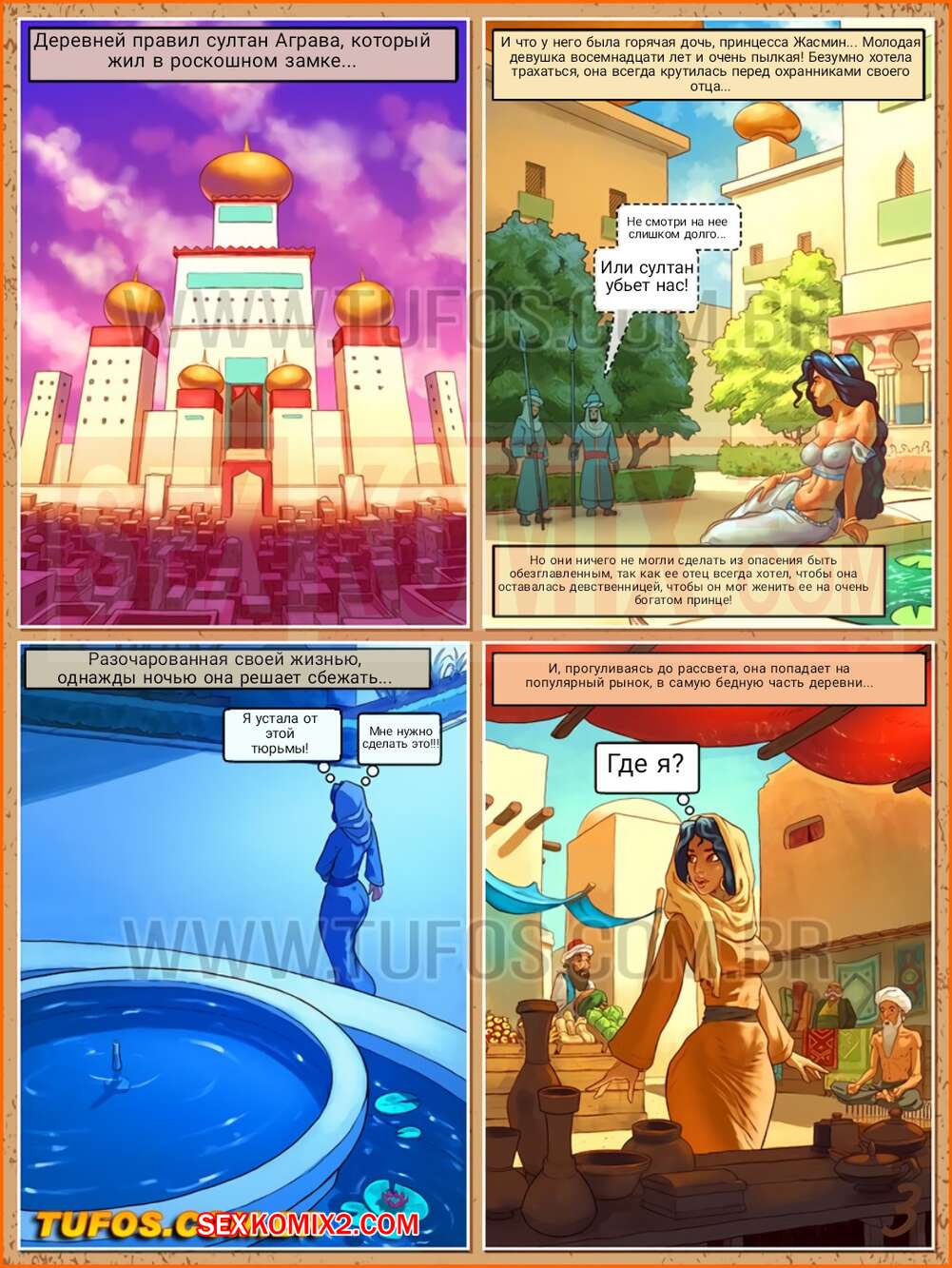 Порно комикс Сказки. Часть 7. Алладин. Правдивая история о бедном парне, который выбрался из нищеты, когда познакомился с местной принцессой. Он трахал девушку ночи на пролет, и приглашал на тройничок джина.