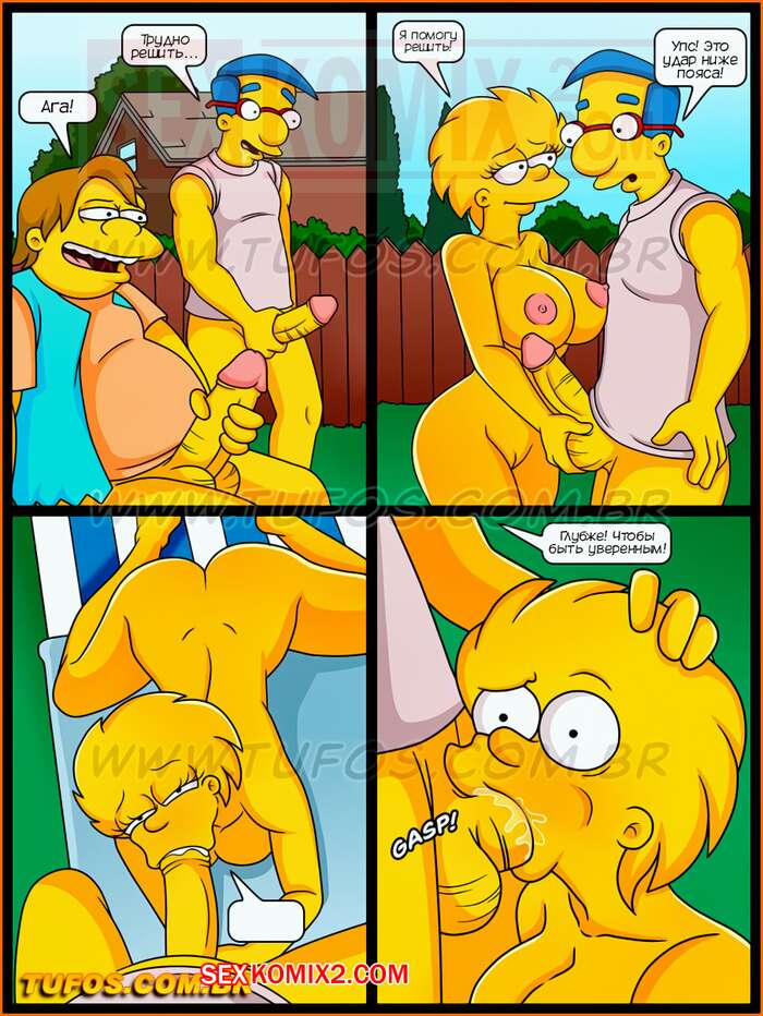 Порно комикс Симпсоны. Часть 37. Бритая или волосатая киска Две горячие сестренки решили позагорать на заднем дворе и стали выяснять, что нравится парням больше, волосатая киска или бритая. Они позвали парней, которые дрочили на них, чтобы они помогли им выбрать победителя.