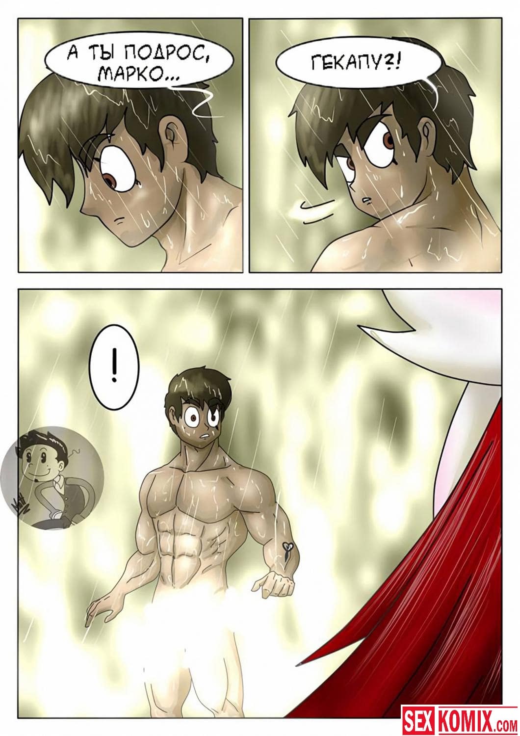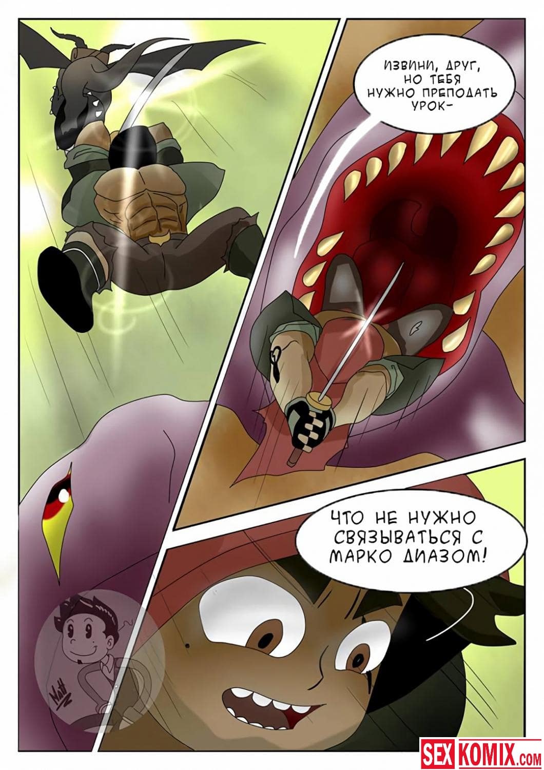 Порно комикс Гекапу Воссоединение. Злобная королева Гекапу совсем соскучилась дома и вспомнила про своего давнего врага по имени Марко. В это время он расправлялся с очередным монстром, и когда наступил вечер, решил помыться в озере. В это время Гекапу переместилась к нему поближе, и раздевшись до гола пошла к нему в воду. Парень был приятно удивлен такой сексуальной девушке рядом и у него сразу встал член.