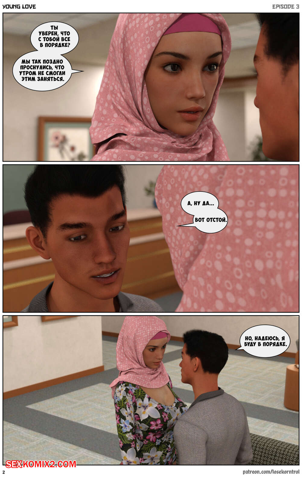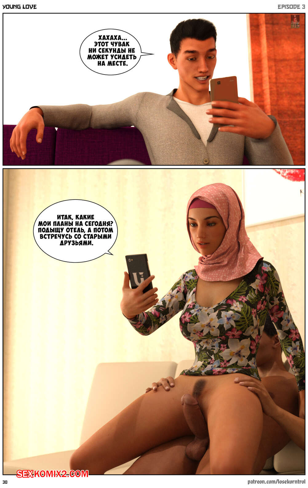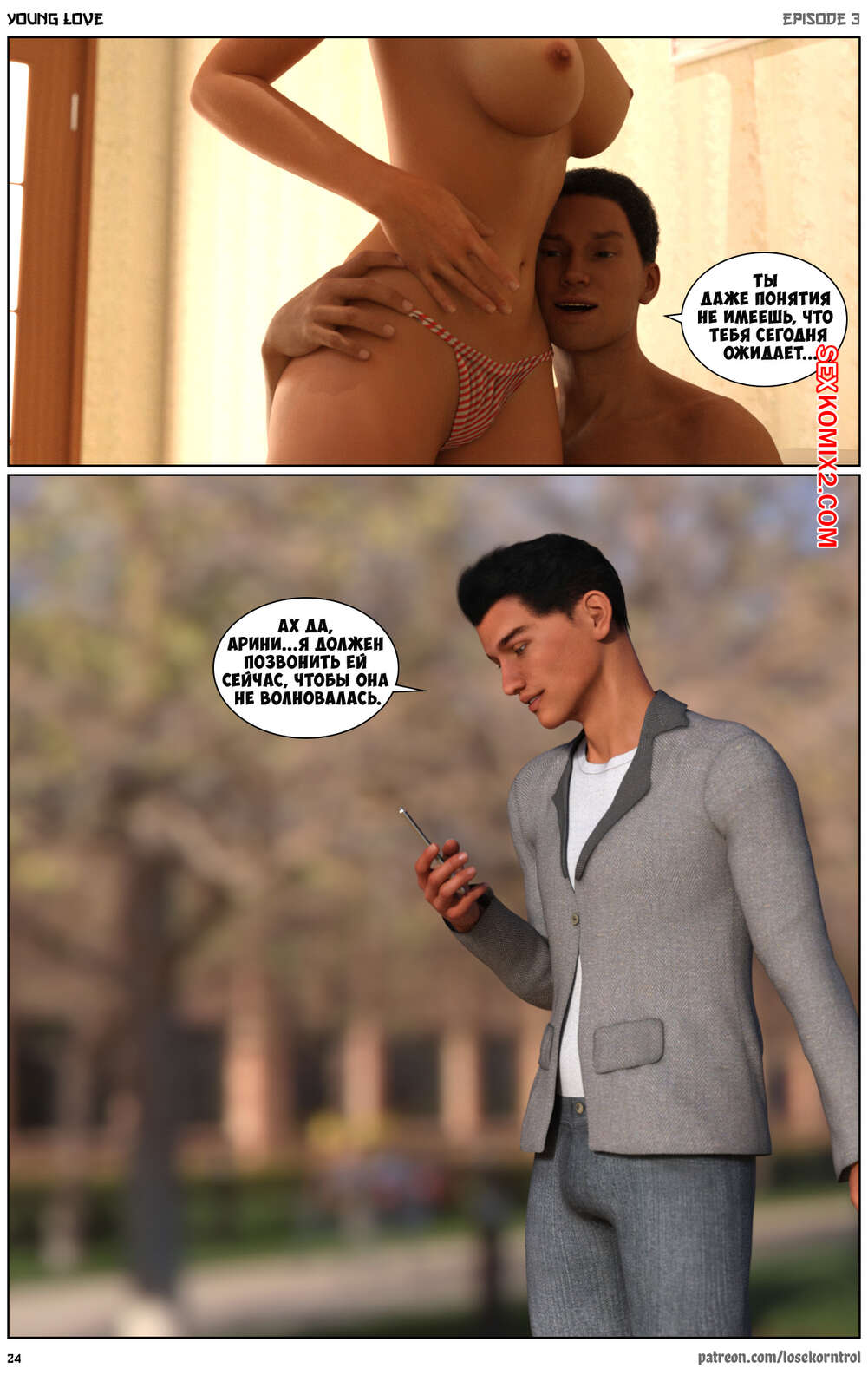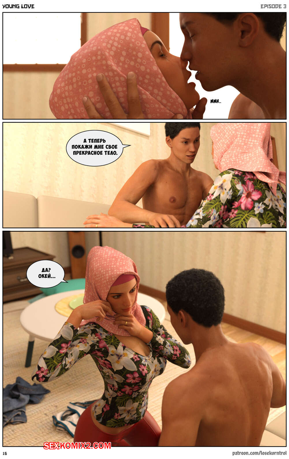 Порно комикс Любовная история. Часть 3. Юная любовь. Young love. Losekorntrol Горячая красотка брюнетка продолжает изменять своему мужу. Он уехал в командировку и она его проводила, а после этого отправилась домой, где ее уже ждал ее молодой дружок со стоячим членом. Она сразу стала сосать его большой хуй, после чего дала ему себя хорошенько выебать.
