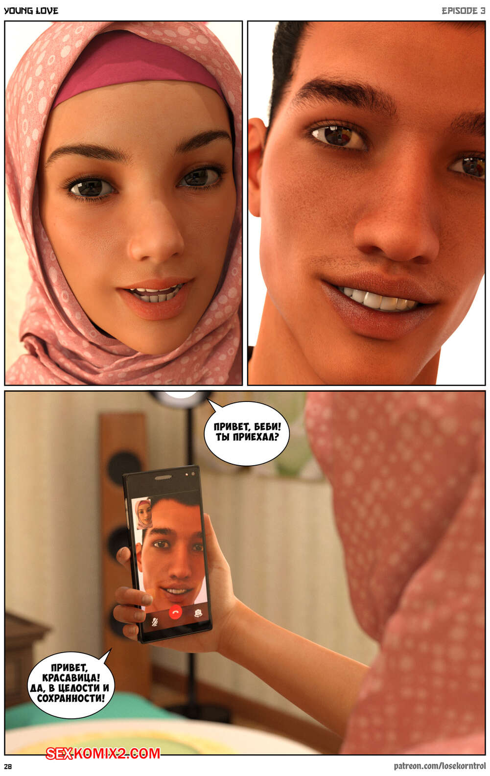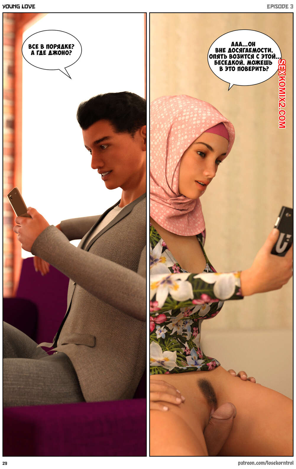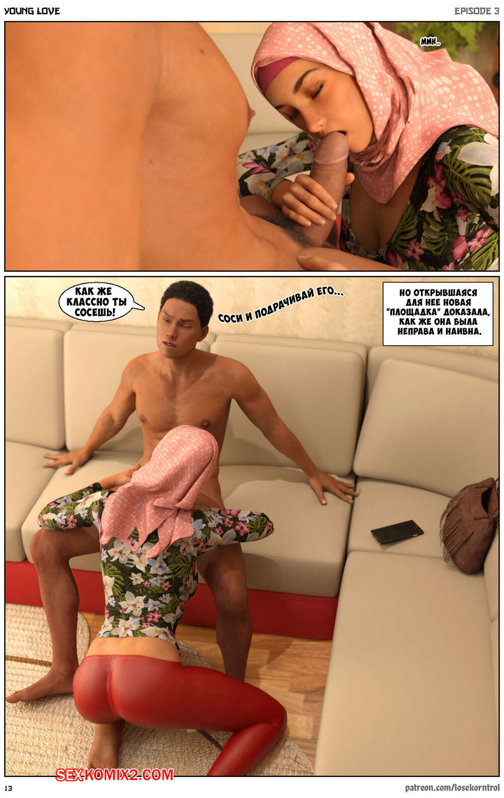 Порно комикс Любовная история. Часть 3. Юная любовь. Young love. Losekorntrol Горячая красотка брюнетка продолжает изменять своему мужу. Он уехал в командировку и она его проводила, а после этого отправилась домой, где ее уже ждал ее молодой дружок со стоячим членом. Она сразу стала сосать его большой хуй, после чего дала ему себя хорошенько выебать.