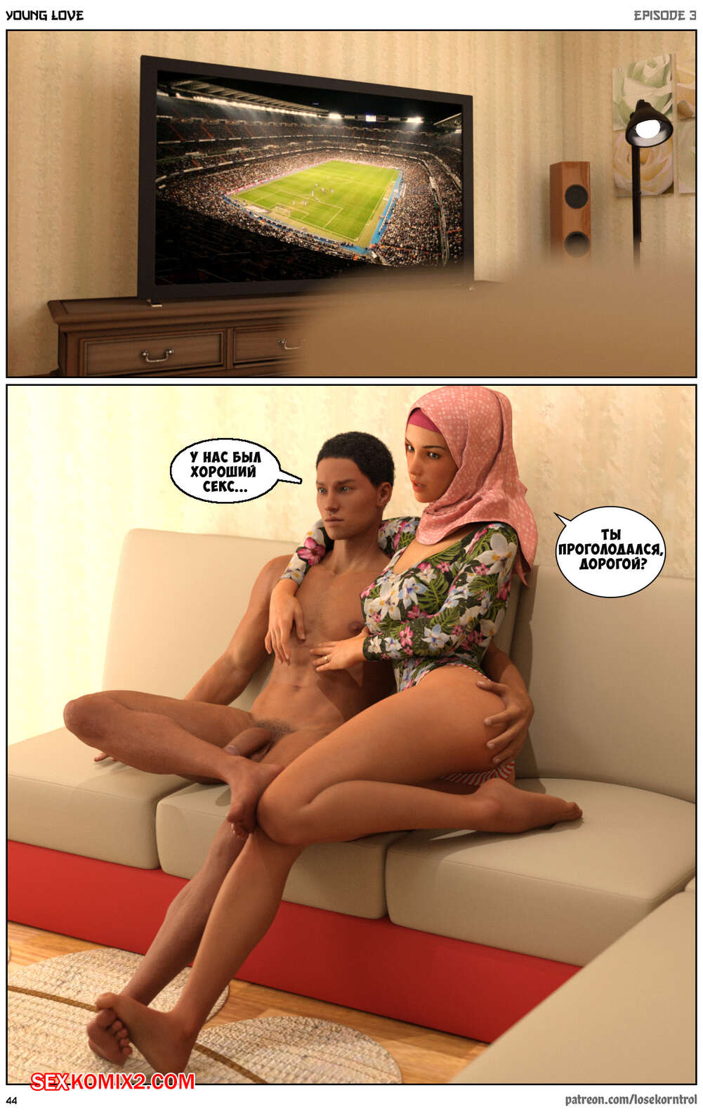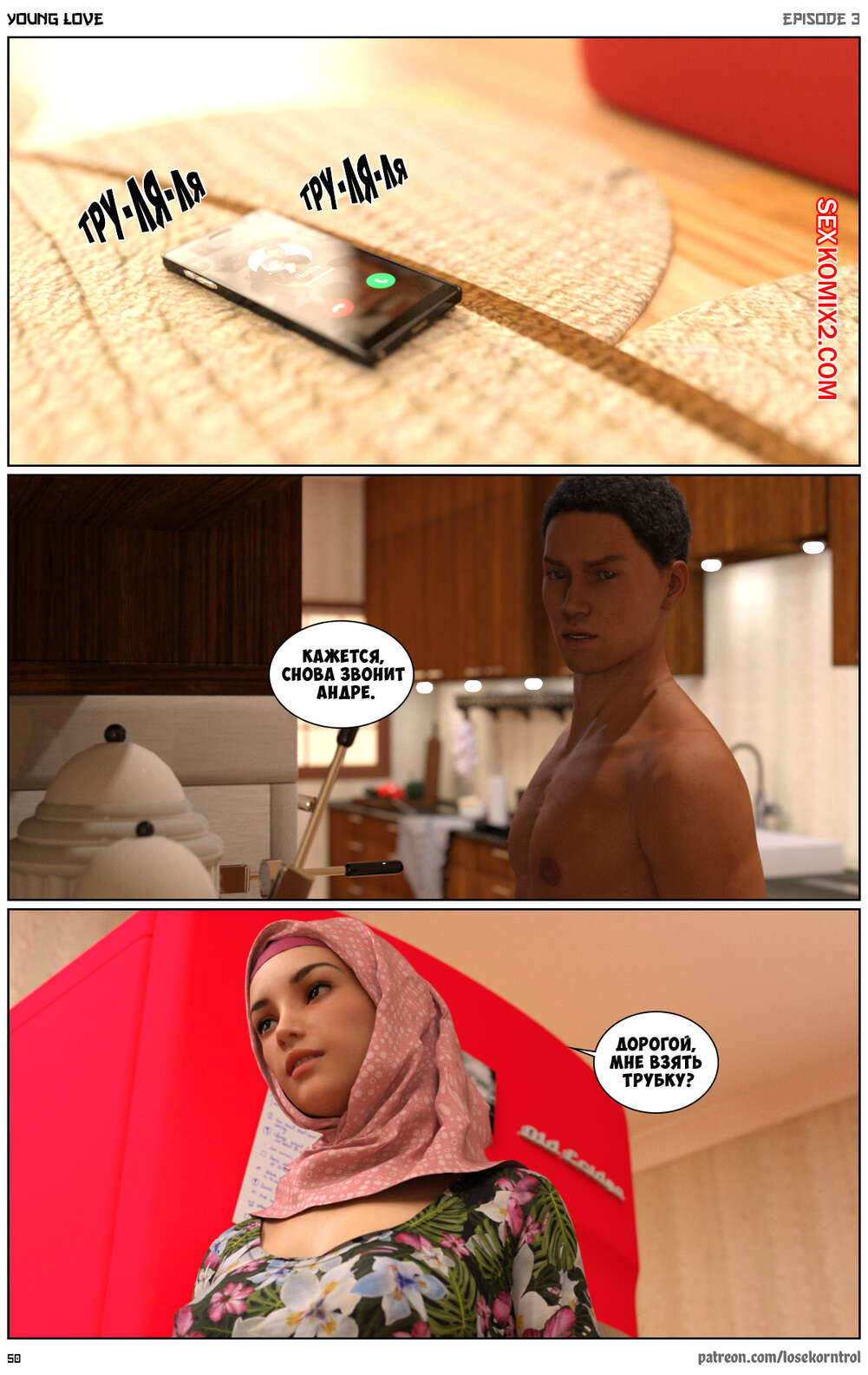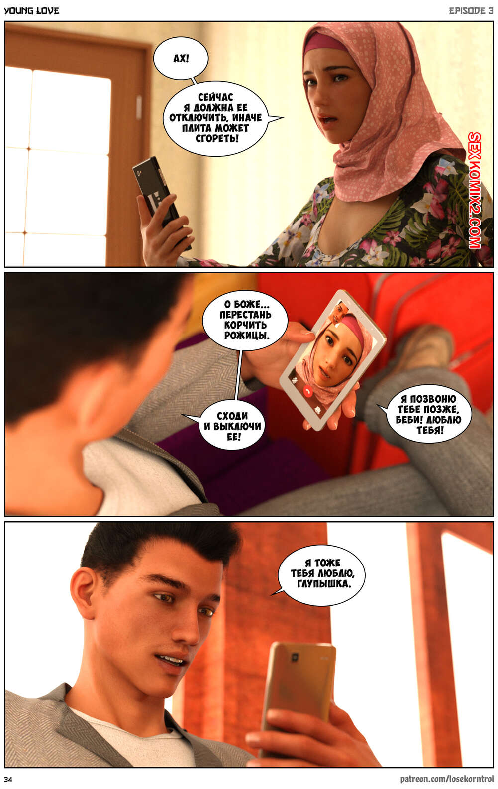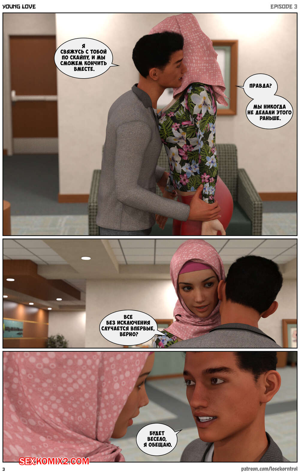 Порно комикс Любовная история. Часть 3. Юная любовь. Young love. Losekorntrol Горячая красотка брюнетка продолжает изменять своему мужу. Он уехал в командировку и она его проводила, а после этого отправилась домой, где ее уже ждал ее молодой дружок со стоячим членом. Она сразу стала сосать его большой хуй, после чего дала ему себя хорошенько выебать.