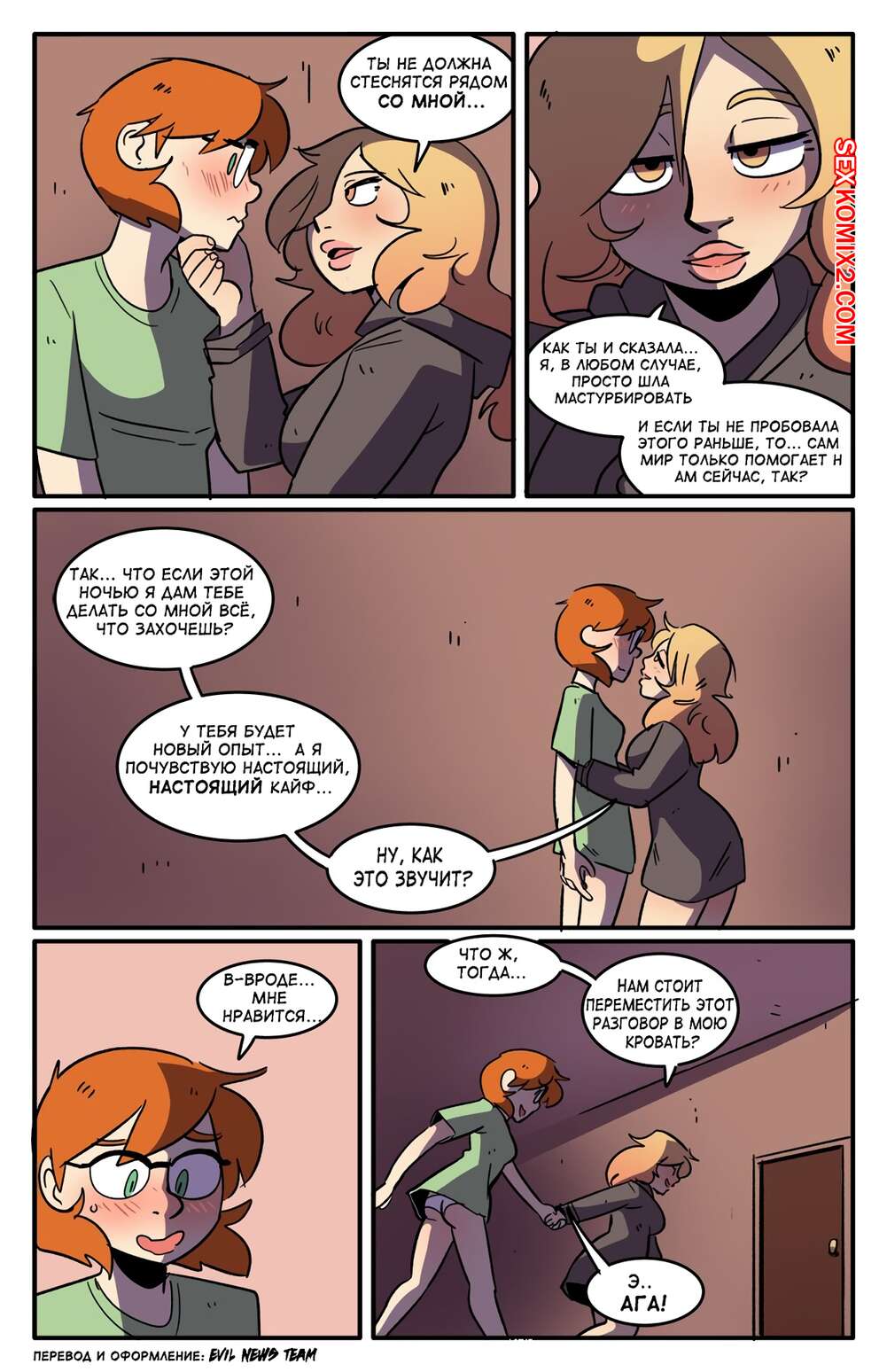 Порно комикс Нежности Две молодые горячие красотки решили повеселиться. Они отправились в комнату, где красотки стали ласкать друг дружке пизденку, а затем они занялись страстной лесбийской еблей.