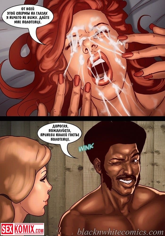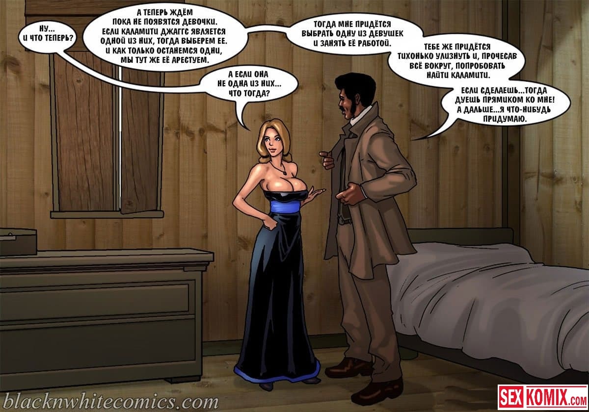 Порно комикс Честный коп. Часть 5. Темнокожий, хорошо сложенный мужчина на службе со своей напарницей ловят опасную преступницу проститутку. Они заманивают её в номер отеля и трахают там по очереди. Сначала проститутка делает куннилингус девушке напарнице а потом принимается сосать большой черный член. Он такой огромный что девушка изнемогает от желания и простит чтобы мужчина оттрахал её свои огромным агрегатом. Начинается групповой секс. Все задействованы в сексе. Проститутка отлизывает в то время как её трахают большим членом. Много спермы, секса и разврата.