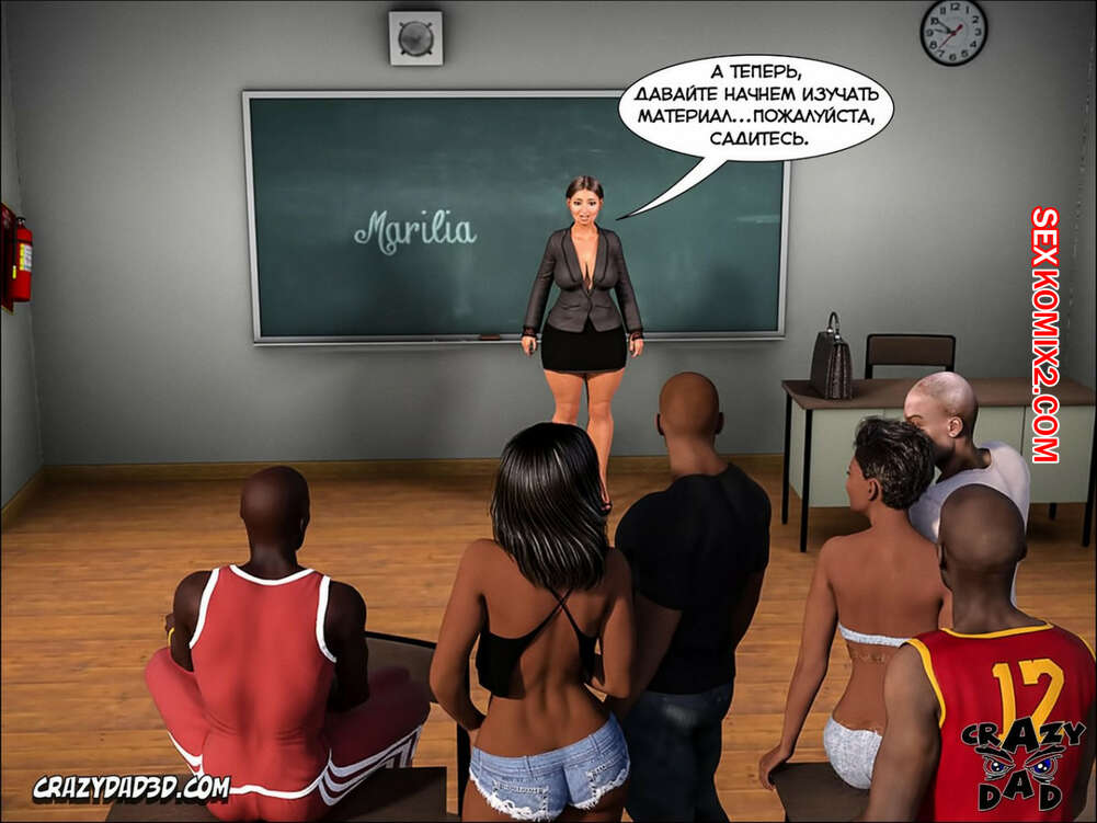 Порно комикс Выпоротая училка Марилия Горячая сисястая красотка брюнетка пришла новой учительницей в класс, где были только темнокожие ученики и была шокирована этим. Один парень решил, что она расистка, поэтому захотел ее наказать. Он раздел ее после уроков и хорошенько выебал.
