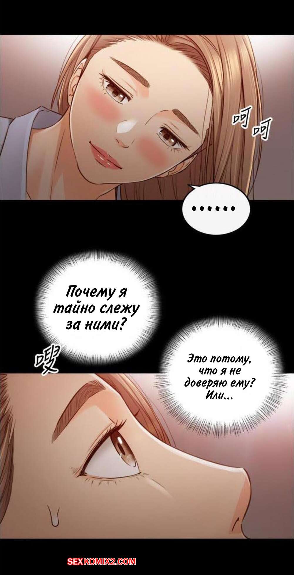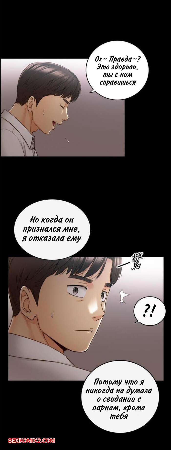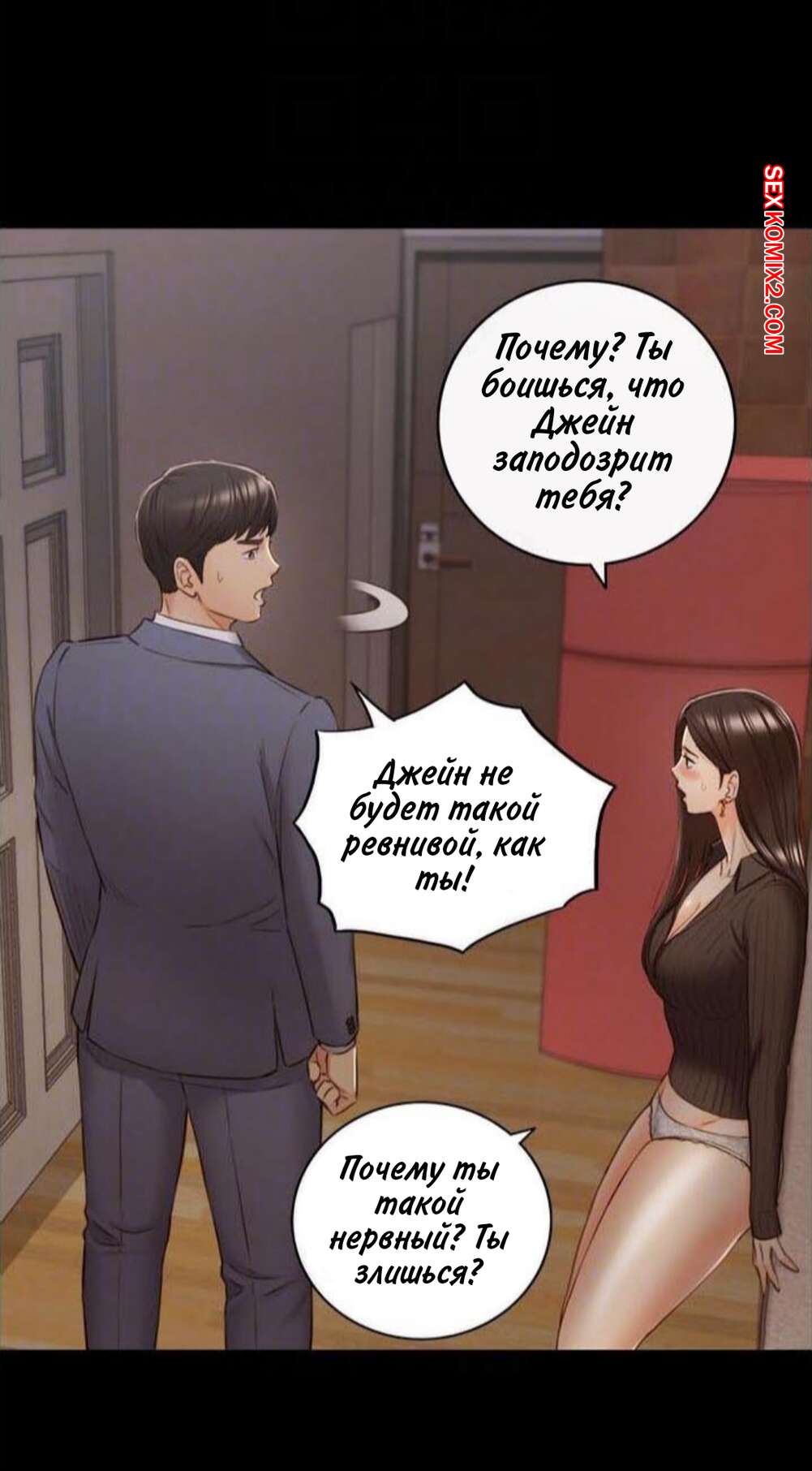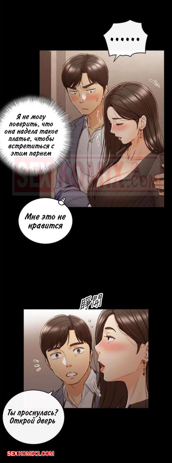 Порно комикс Молодой босс. Часть 94. Young boss Горячая красотка брюнетка вернулась с парнем домой и сразу разделась, чтобы лечь спать. Она не могла уснуть от возбуждения, поэтому решила повеселиться с парнем и стала тянуться к его члену.