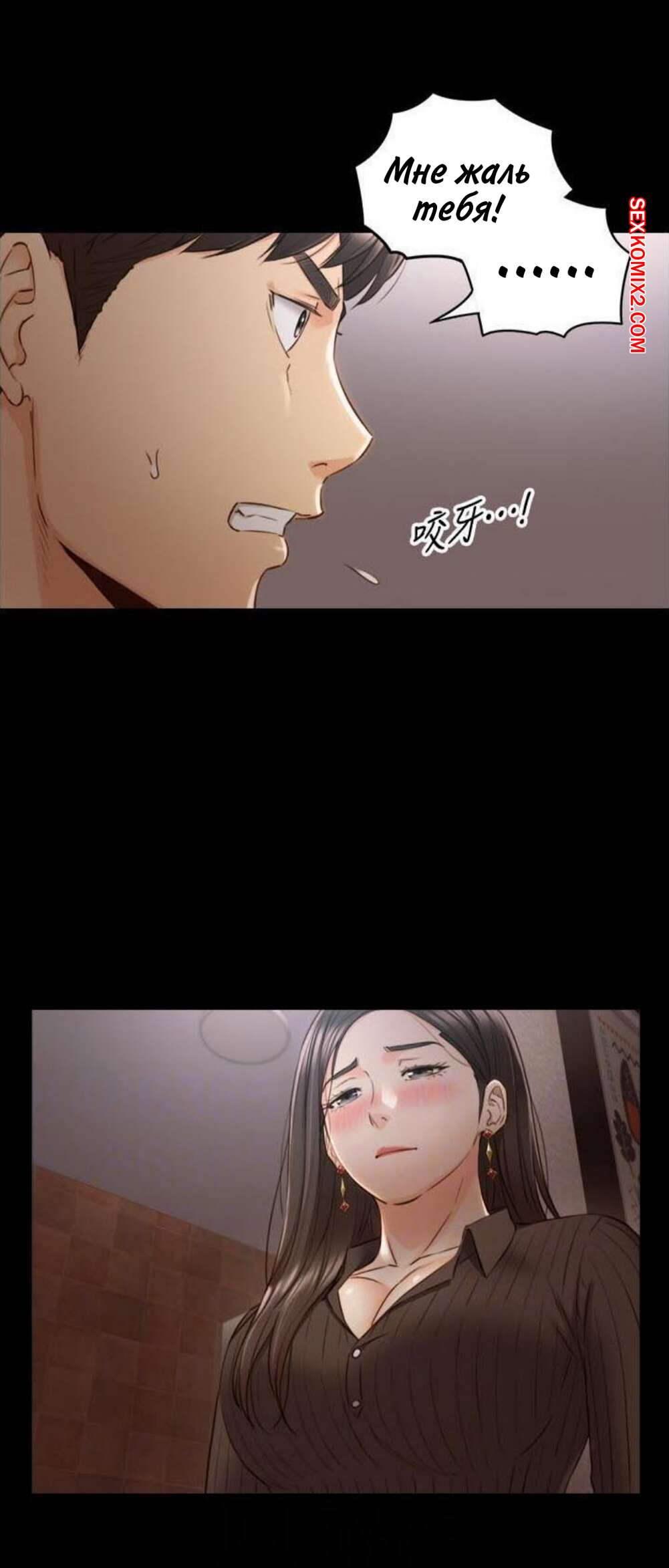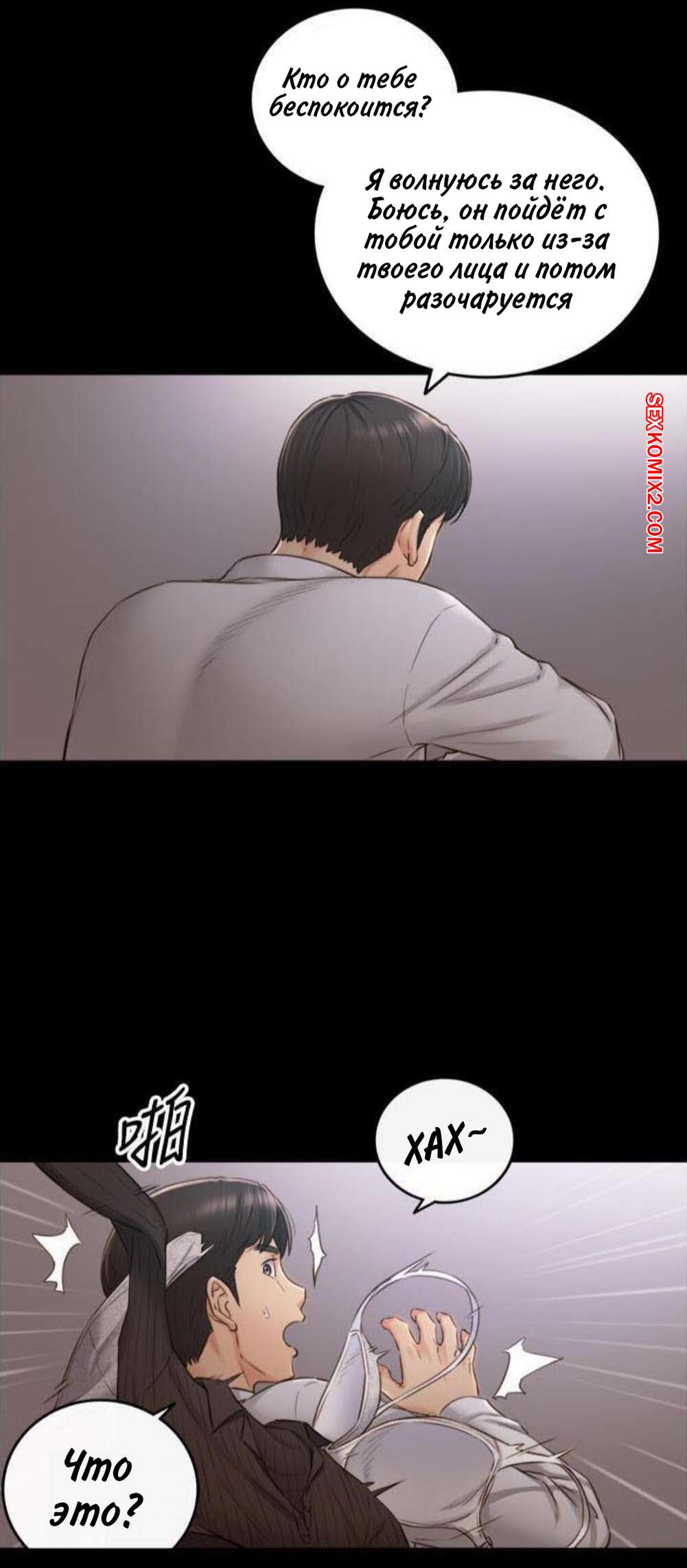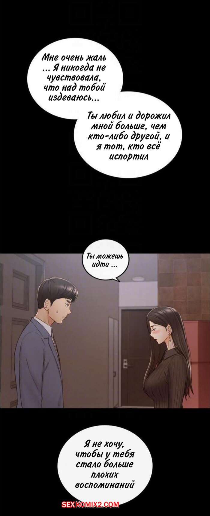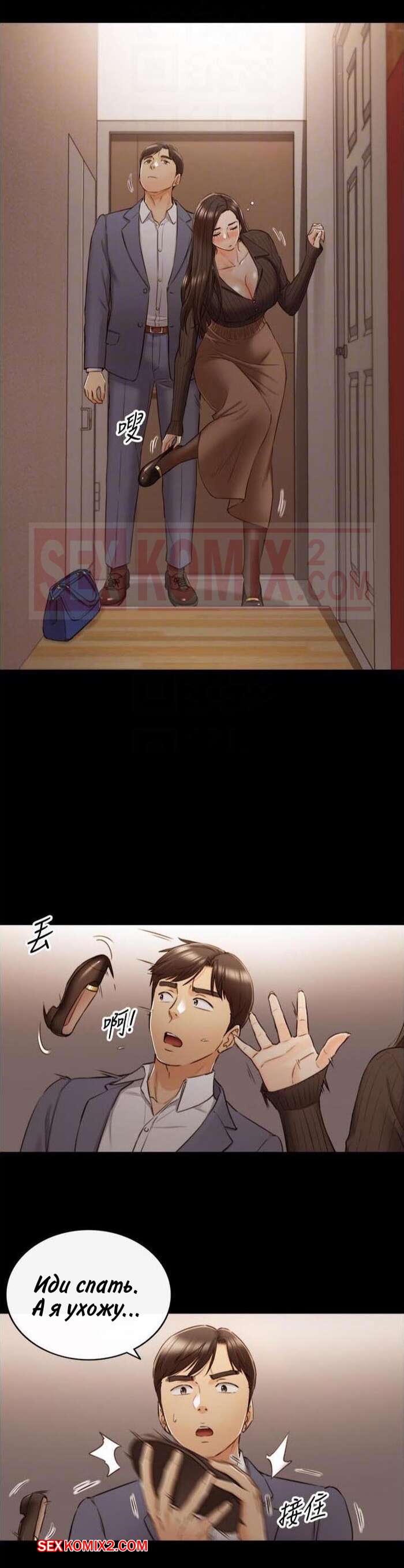Порно комикс Молодой босс. Часть 94. Young boss Горячая красотка брюнетка вернулась с парнем домой и сразу разделась, чтобы лечь спать. Она не могла уснуть от возбуждения, поэтому решила повеселиться с парнем и стала тянуться к его члену.