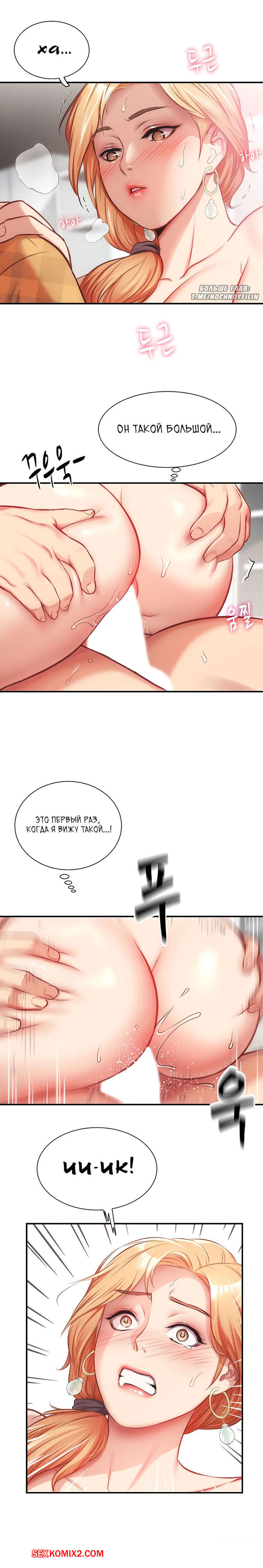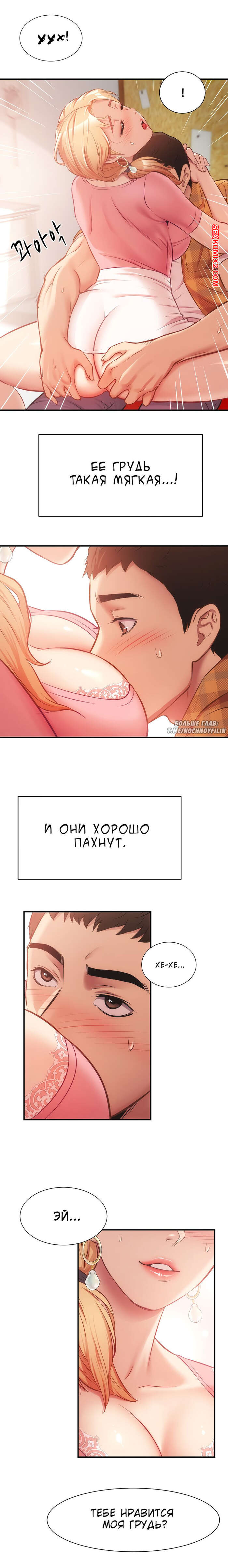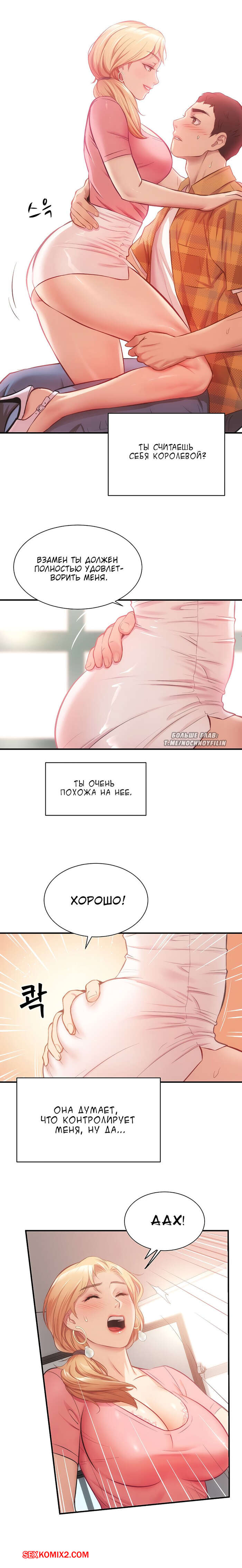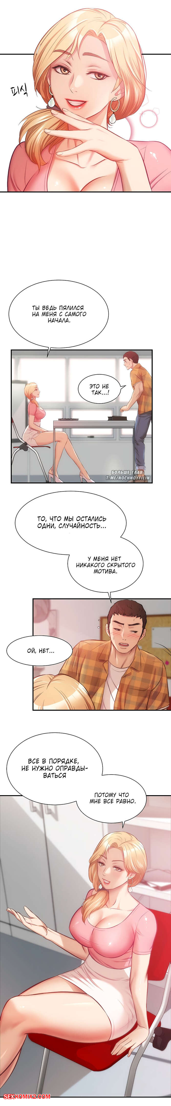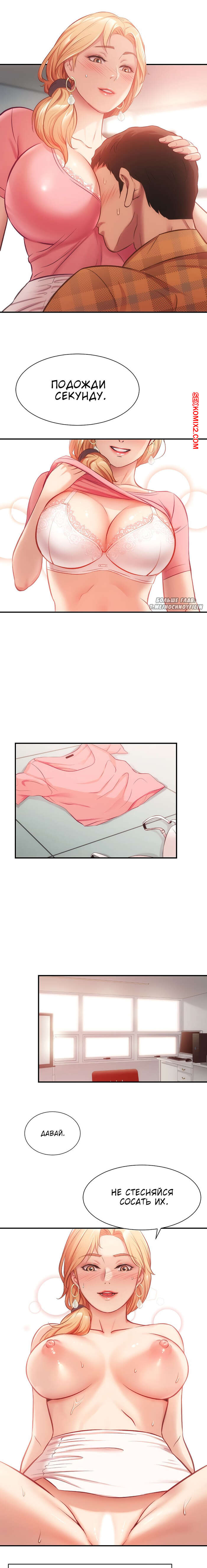 Порно комикс Достоинство жены моего брата. Части 18 и 19. Brothers wife dignity Горячая сисястая блондинка осталась наедине с пареньком. Она стала его соблазнять и усадила его на стул и стала к нему приближаться. Сучка стала сосать большой хуй паня, а затем дала ему себя хорошенько выебать.