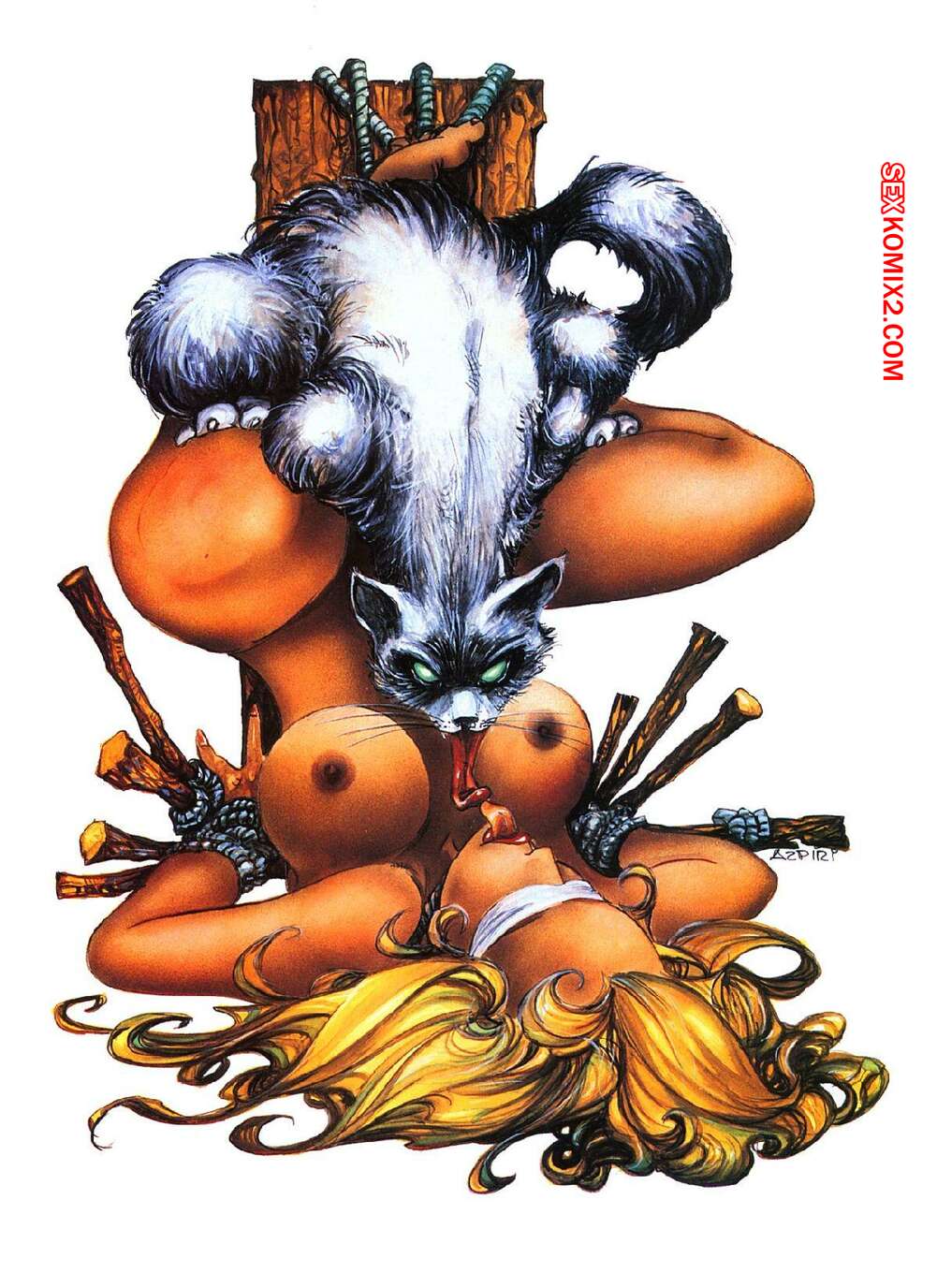 Порно комикс Сладкая пытка. Бетаехем Стил. История Горячая сисястая блондинка привлекает внимание многих существ. Они захватывают ее и связывают, после чего делают с ней все, что пожелают и хорошенько трахают, получая огромное удовольствие.