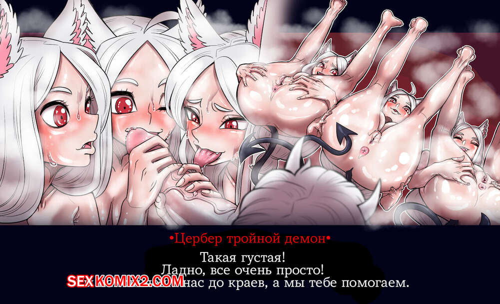 Порно комикс Хеллтакер. Helltaker Горячие сисястые красотки блондинки очень любят ебаться. Они собрались и решили повеселиться, устроив страстную групповую еблю с двойным проникновением.