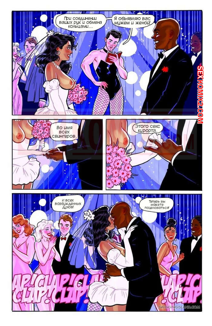 Порно комикс Волнующий остров. Свадьба Риты и Рико. Swinging Island. Andrew Tarusov Парень с красоткой наконец празднуют свадьбу и они пригласили всех своих друзей свингеров. Невеста надела сексуальное платье, в котором у нее видно сиськи, что очень понравилось всем парням на свадьбе.