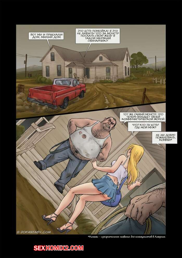 Порно комикс Русская жена Горячая сисястая красотка блондинка отправилась из России в Америку. Там ее похитили два старых мужика, которые стали держать ее в подвале и грубо ее трахать, получая огромное удовольствие.