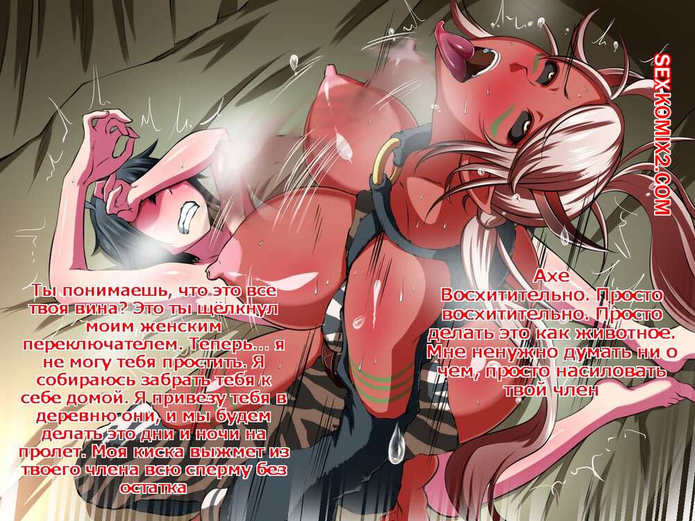 Порно комикс Mukidashi Seihonnou. Ogre Musume to Noukou OneShota Sex Горячая сисястая блондинка демон решила повеселиться с молодым парнем пленником. Она разздела его и стала дрочить большой хуй парня, после чего дала ему себя хорошенько выебать.