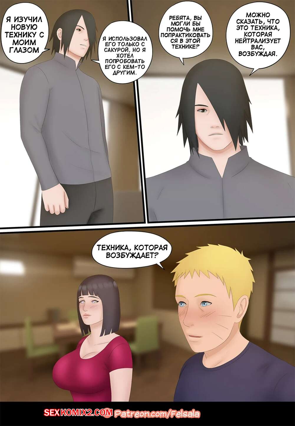 Порно комикс Око желания. Eye of Desire. Felsala Саске пришел к своим друзьям, чтобы предложить им попробать новую технику, которую он освоил. С ее помощью он возбудил своих друзей и они стали страстно целоваться, после чего девушка попросила парня ее выебать.