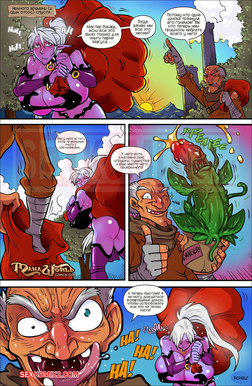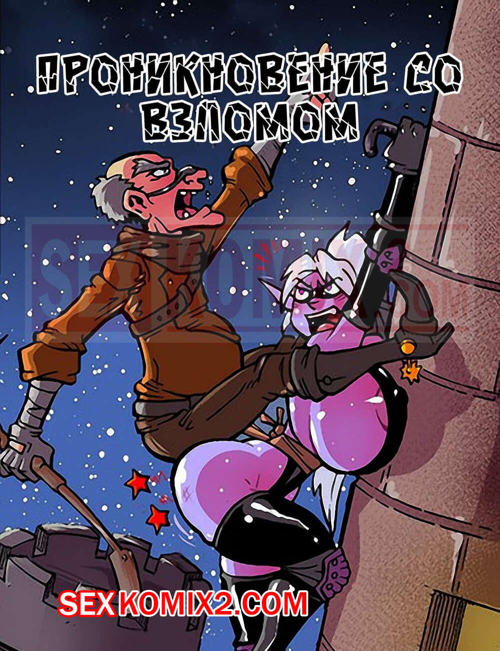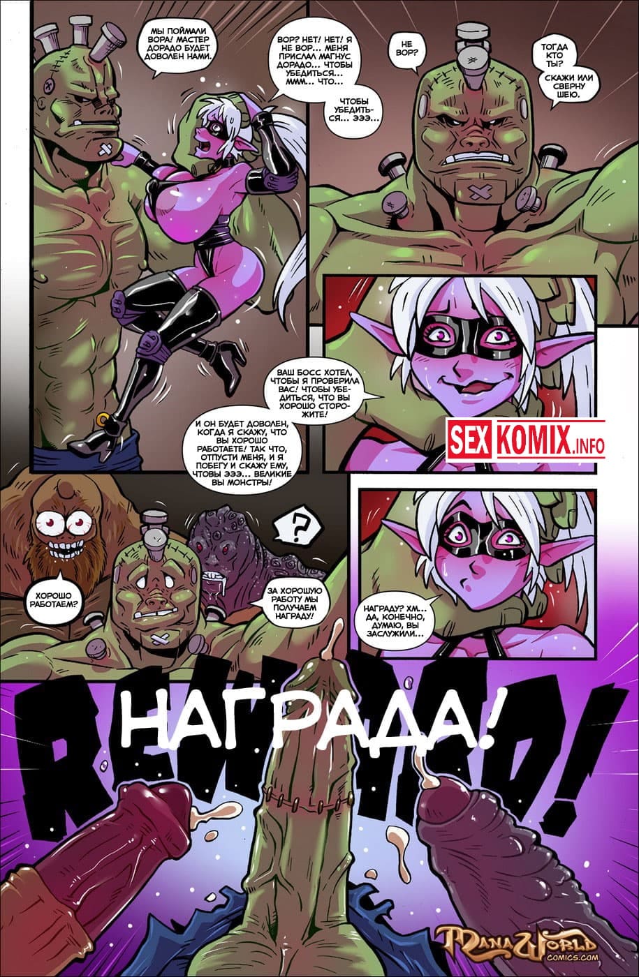 Порно комикс Проникновение со взломом. Сексуальная темная эльфийка со своим другом проникли в секретную библиотеку, чтобы раздобыть редкую книгу с заклинаниями. Но их обнаружила охрана, воров ловко изловили. Охранники видели большие сиськи девушки захотели трахнуть её, надо же как-то наказать преступников. Мужчина трахали сочную блондинку, она в свою очередь тоже получала от этого удовольствие.